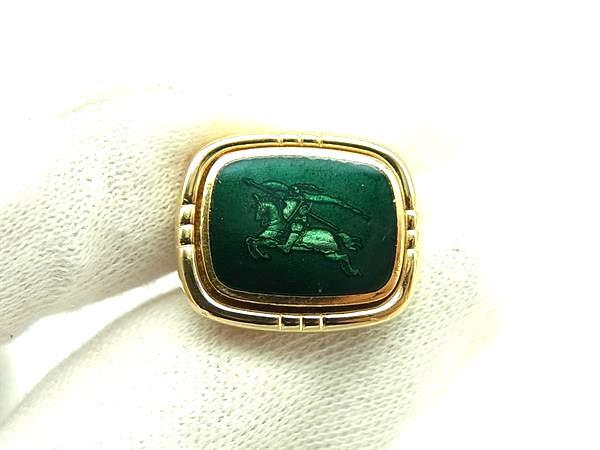 ■美品■ BURBERRY バーバリー カフスボタン カフリンクス アクセサリー メンズ ゴールド系×グリーン系 DJ5247