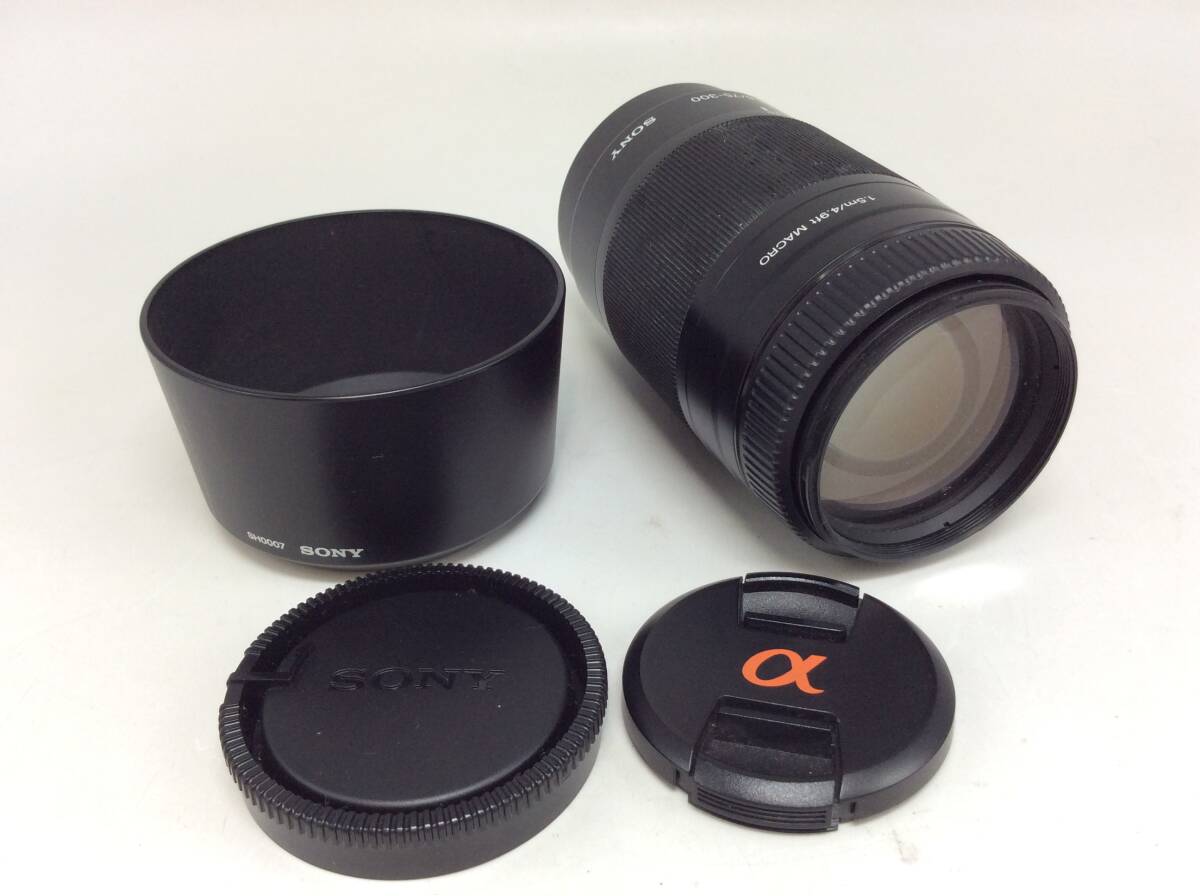 PP81★【動作/精度未確認】レンズのみ SONY ソニー 4.5-5.6/75-300 一眼レフ用 キャップ/レンズフード付き 現状品 ジャンク品