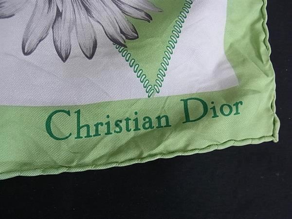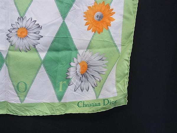 ChristianDior ディオール フラワー 花柄 スカーフ ハンカチーフ ポケットチーフ グリーン系×マルチカラー DJ5769