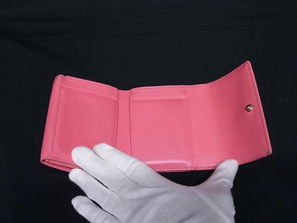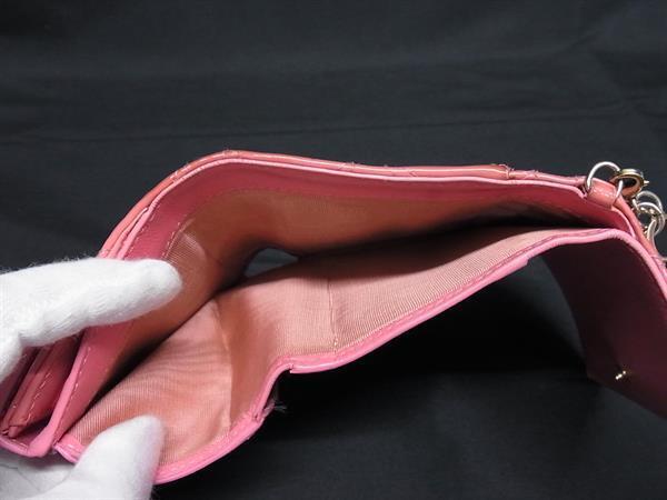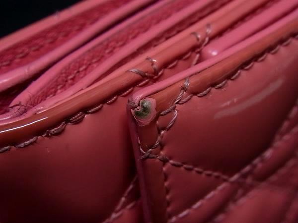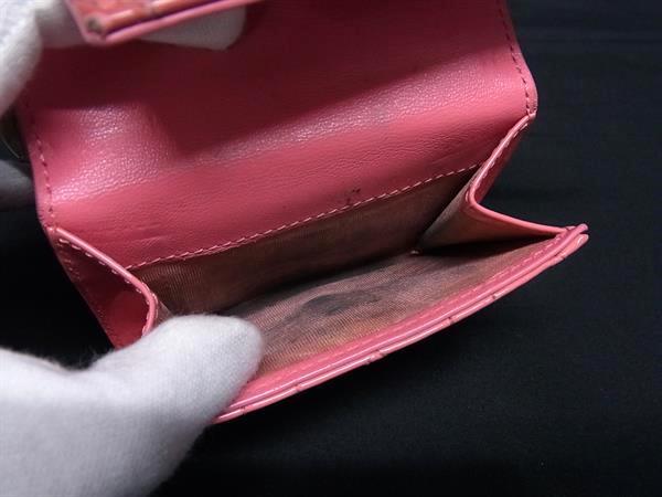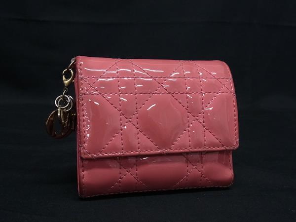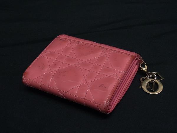 1円 ChristianDior クリスチャンディオール レディディオール カナージュ パテントレザー 三つ折り 財布 ウォレット ピンク系 FT2887