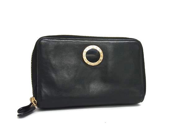 1円 BVLGARI ブルガリブルガリ レザー 二つ折り 財布 ウォレット 札入れ 小銭入れ カード入れ メンズ ブラック系 BM9688