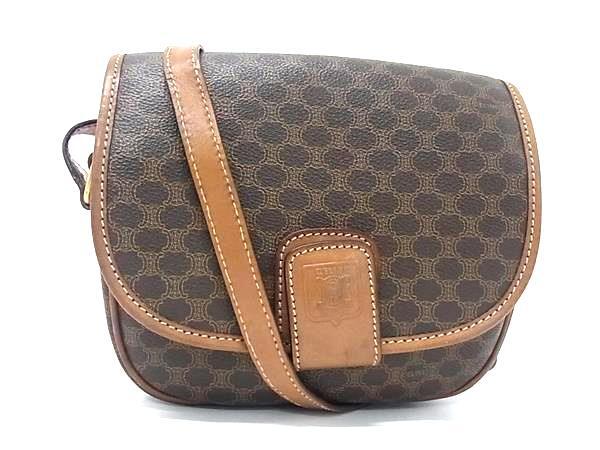 1円 CELINE セリーヌ ヴィンテージ マカダム柄 PVC×レザー クロスボディ ショルダーバッグ 肩掛けかばん レディース ブラウン系 FP9259