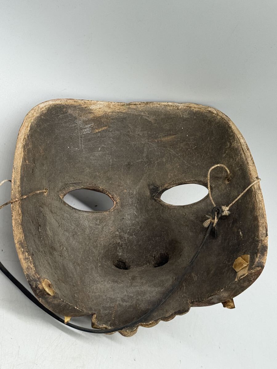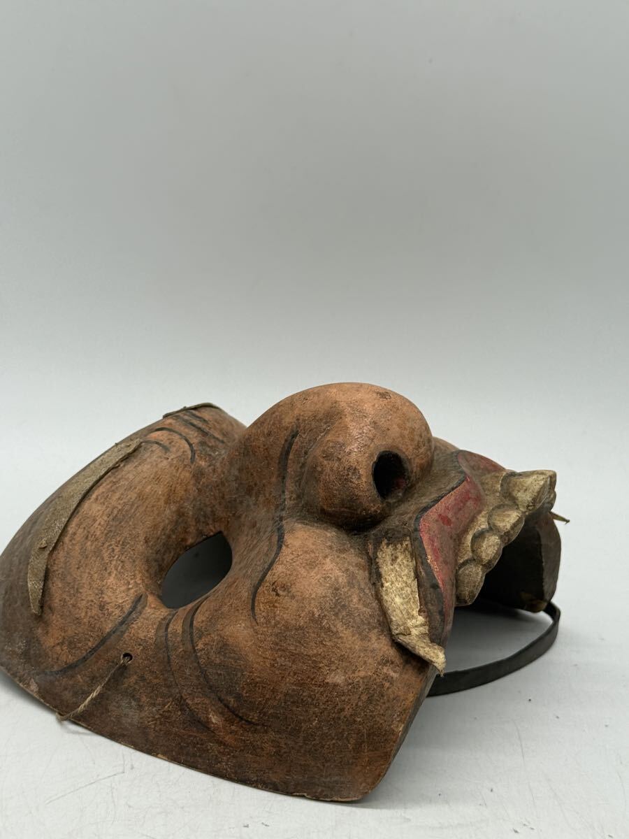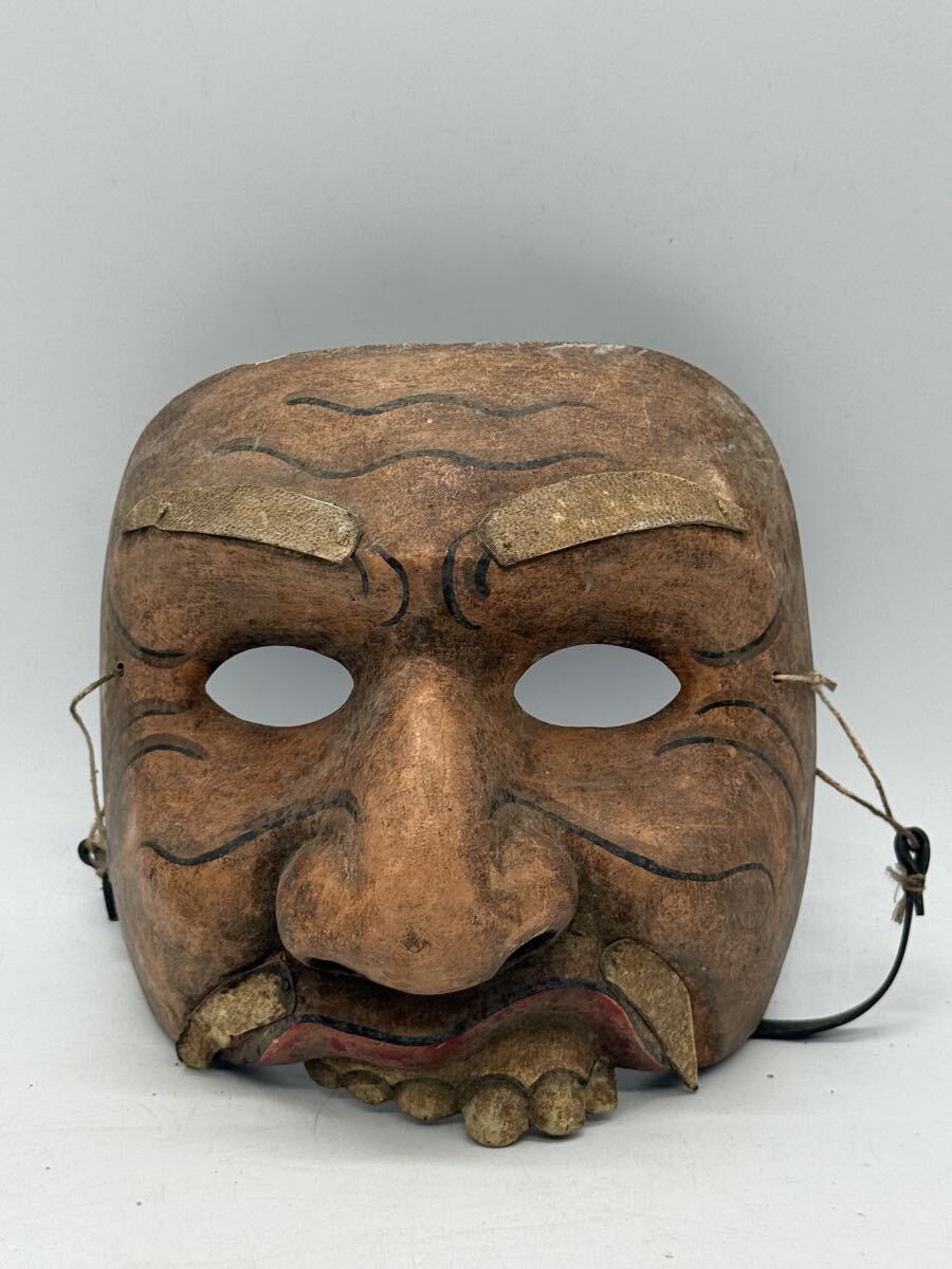 大きな鼻と皺の表現が特徴的な造形で、民芸面・祭礼面・舞踏面などに見られる表情を持っています。