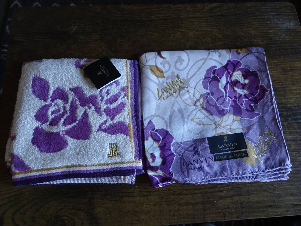 LANVIN ランバン ハンドタオル&ハンカチ 2枚セット パープル系