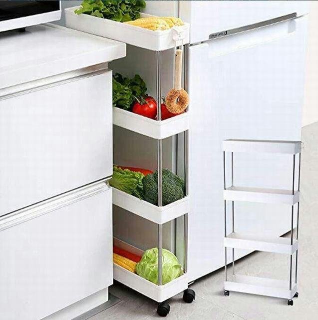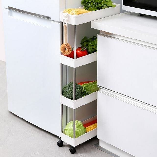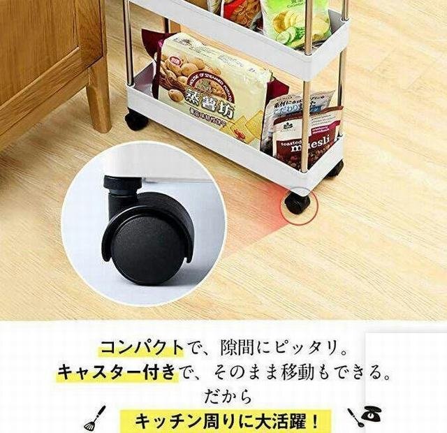 [スリム構造] 狭いスペースでも活躍、隙間に使えるスリムなワゴンです。スッキリ収納できました。キッチンだけでなく、リビング等のすき間に設置したり、様々な隙間に合わせて収納が可能です!
