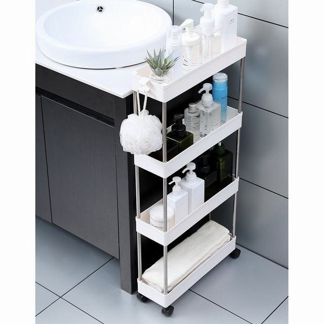 キッチンワゴン 4段 キッチンラック 隙間収納 スリム キャスター付き 組み立て簡単 省スペース 台所 部屋 居間 トイレ 浴室用