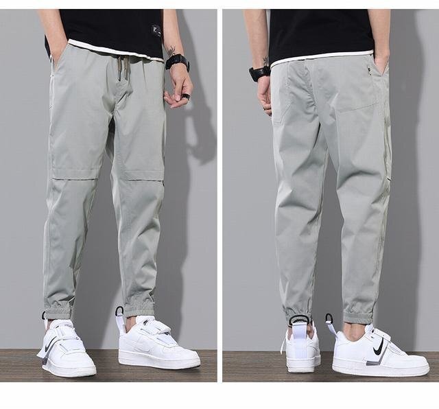 春 夏 秋 アイスシルク チノパン ジョガーパンツ メンズ ボトムス テーパードパンツ ロングパンツ ライトグレー L