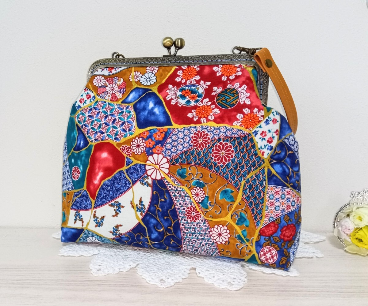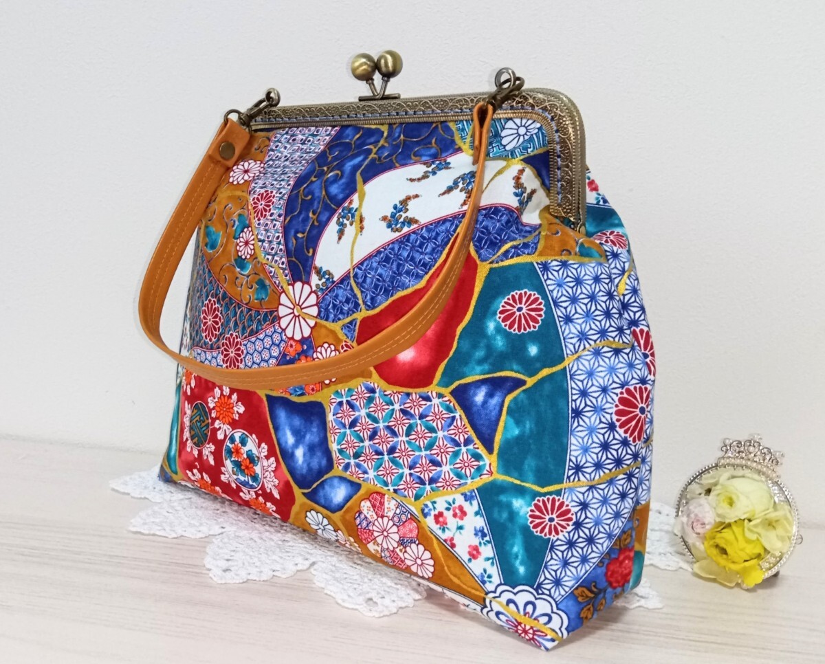 ・金継ぎ物語の、持ち手付きがま口バッグです♪