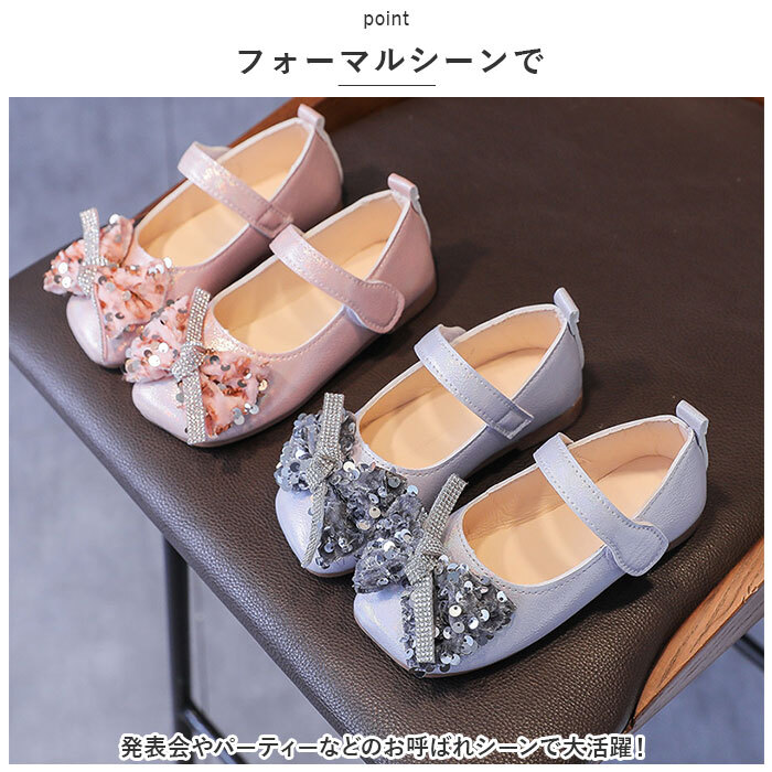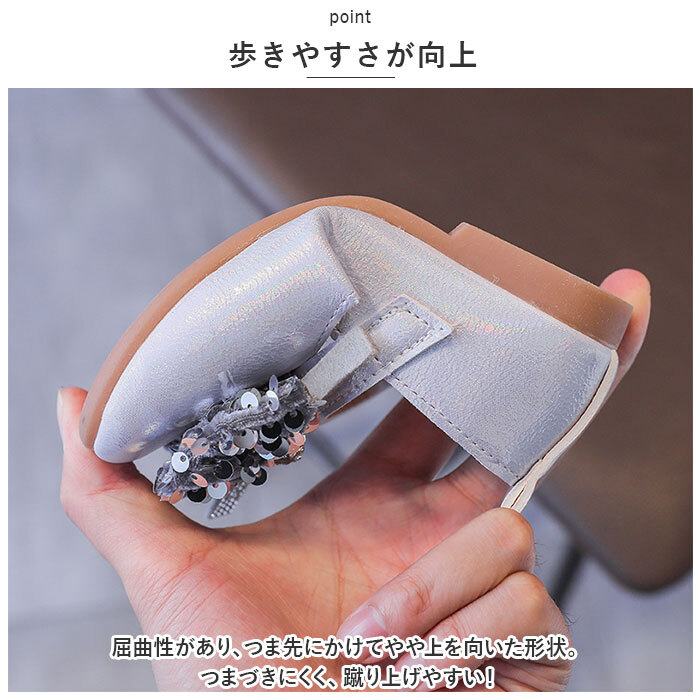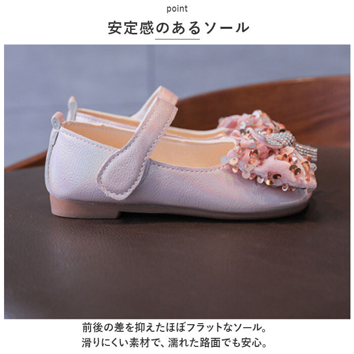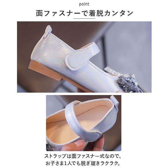 | 商品説明 | ・・足元もおしゃれに♪キュートなフォーマルシューズが登場。 ・【可愛さアップのポイント】 ・上品な光沢のある仕上がり。つま先部分に配置された立体的なリボンが印象的で、キラッと光るストーンやスパンコールもプラス。 ・【面ファスナーで着脱カンタン】 ・ストラップは面ファスナー式なので、お子さま1人でも脱ぎ履きラクラク。 ・【歩きやすさが向上】 ・屈曲性があり、つま先にかけてやや上を向いた形状。つまづきにくく、蹴り上げやすい! ・【安定感のあるソール】 ・前後の差を抑えたほぼフラットなソール。滑りにくい素材で、濡れた路面でも安心。 ・【フォーマルシーンで】 ・発表会やパーティーなどのお呼ばれシーンで大活躍! |