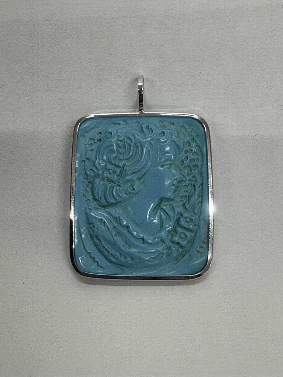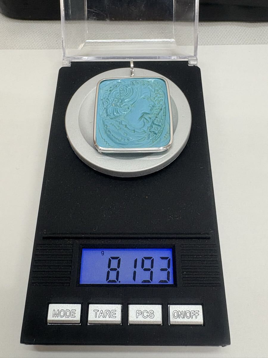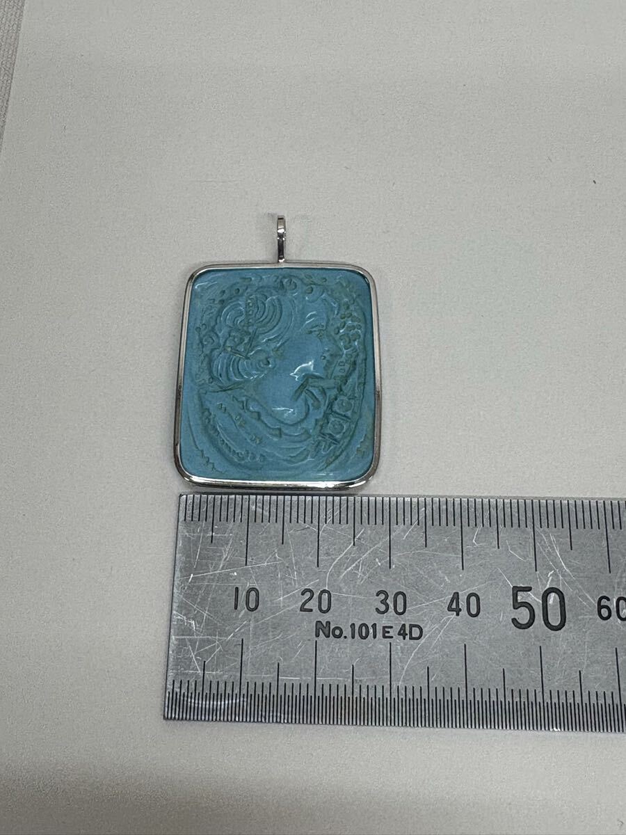 (7) K18WG ネックレストップ トルコ石 カメオ ターコイズ 女性 約8.1g