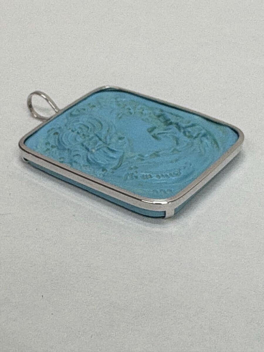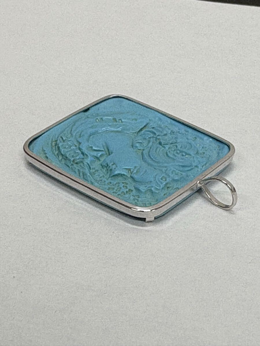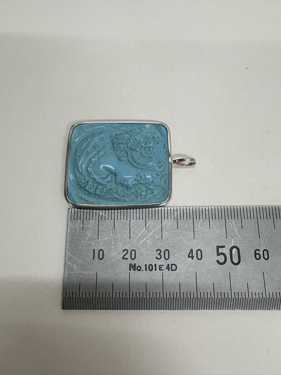 (7) K18WG ネックレストップ トルコ石 カメオ ターコイズ 女性 約8.1g