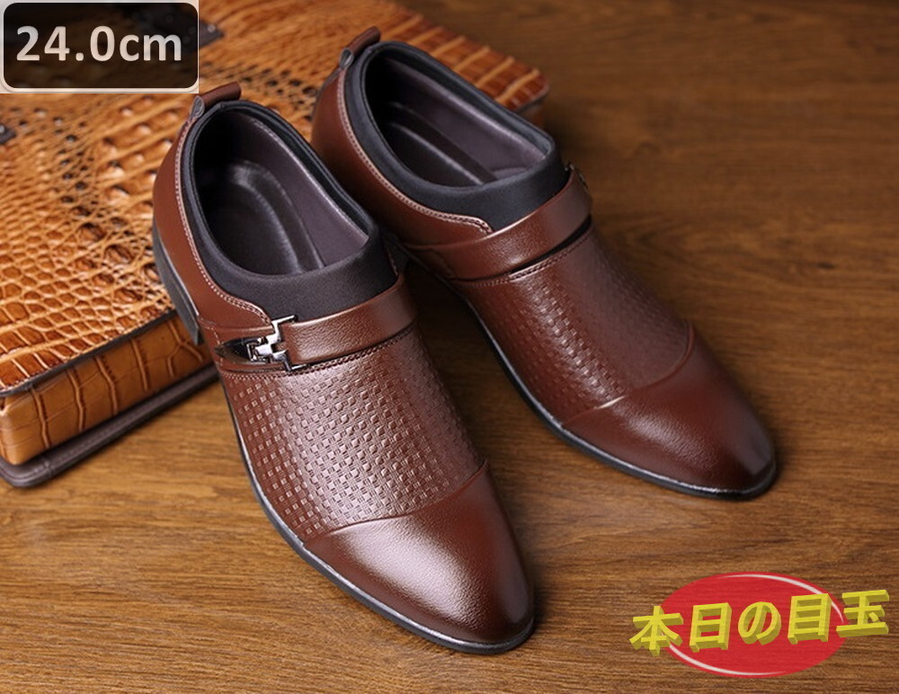 1円~ ☆ メンズ ビジネス レザー シューズ ブラウン サイズ 24.0cm 革靴 靴 カジュアル 屈曲性 通勤 軽量 仕事 【613】