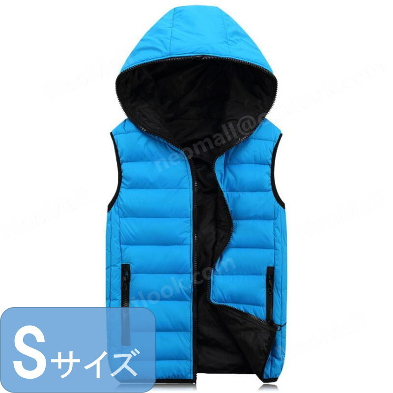 シンプルな メンズ ダウンベスト 003 ブルー Sサイズ 中綿ダウン 中綿ベスト キルティング アウター 防寒 秋冬 暖かい