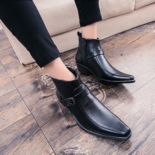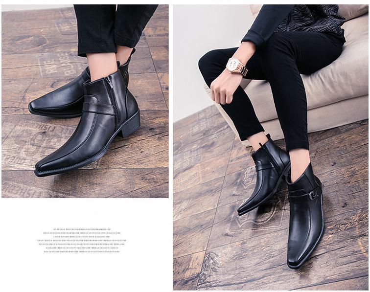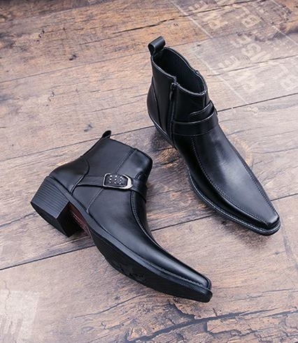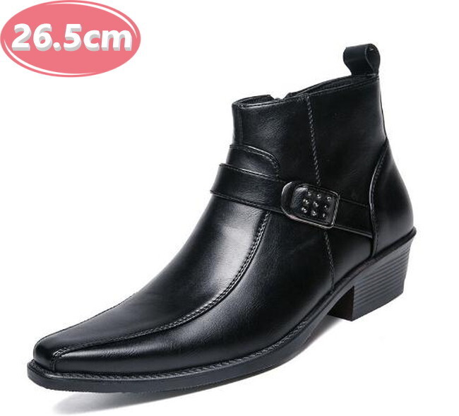 メンズ PUレザー ブーツ シューズ ブラック 26.5㎝ 革靴 靴 カジュアル 屈曲性 通勤 軽量 インポート品【n148】