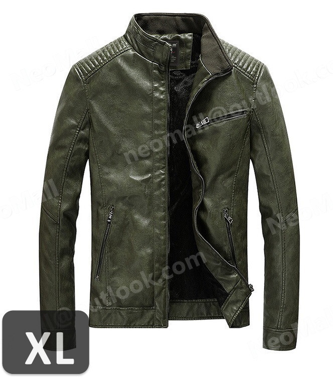 メンズ レザージャケット【985】グリーン XLサイズ 裏起毛 革ジャン バイクジャケット ジャケット PUレザー ブルゾン ライダーズ