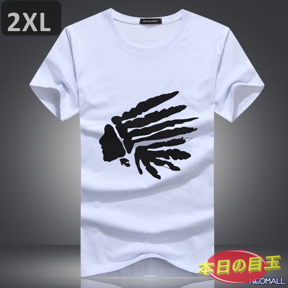 本日のお買得 ☆ 丸首 半袖 Tシャツ【462】 ホワイト 2XLサイズ トップス シャツ シンプル イラスト デザイン 春夏