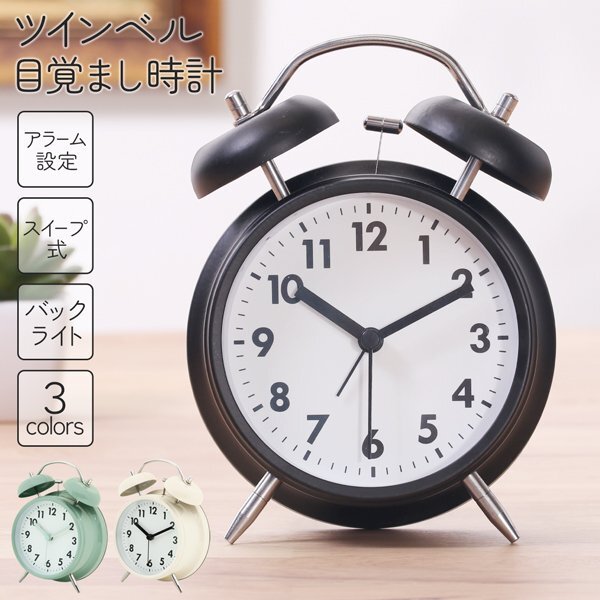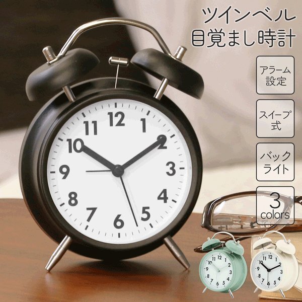目覚まし時計 置き時計 アナログ 時計 おしゃれ ベル 卓上 連続秒針 レトロ 新生活 プレゼント 送料無料 7M◇ ベル置時計:ブラック