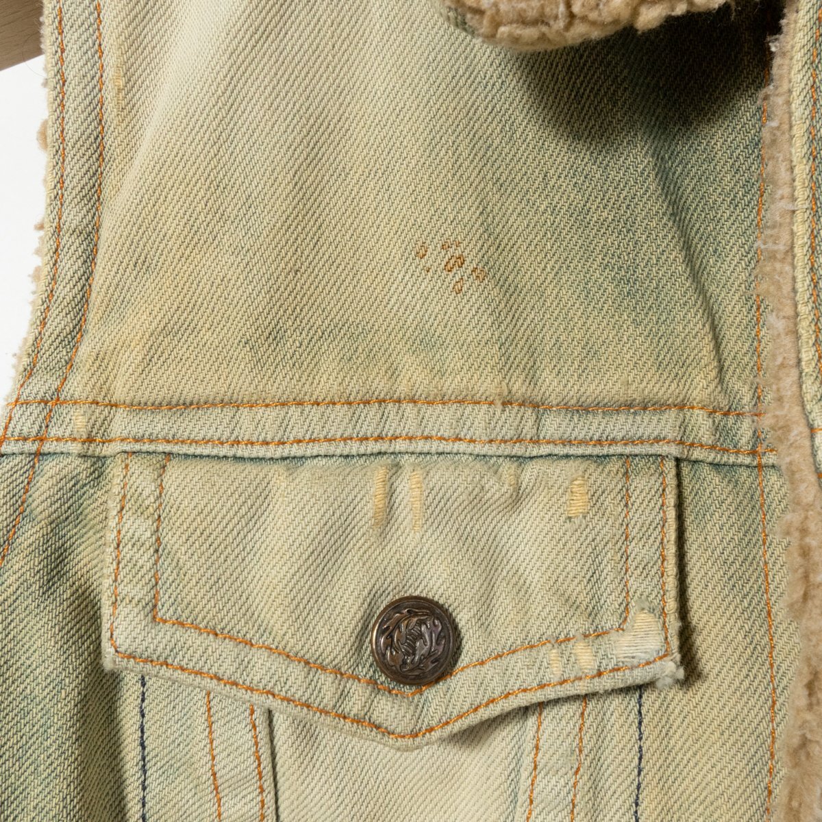 | 状態 | C 全体的に使用感・色褪せ、右ポケット上側、左ポケット、左肩にシミ、右ポケットと後左肩にスレがございます。(色味は元々のデザインの可能性がございます。) |