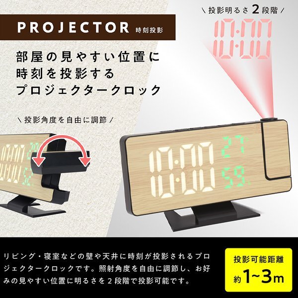 | ウッド調/多機能搭載 プロジェクタークロック | |||||||||||||