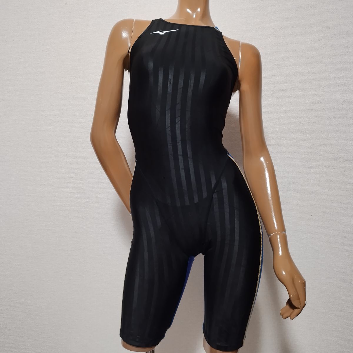 26*ミズノmizuno女子競泳水着(XLサイズ)★N2MG8226★オープンバック光沢黒ブラック青ブルー★Fina承認・大きいサイズ男性も