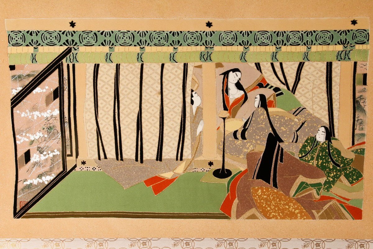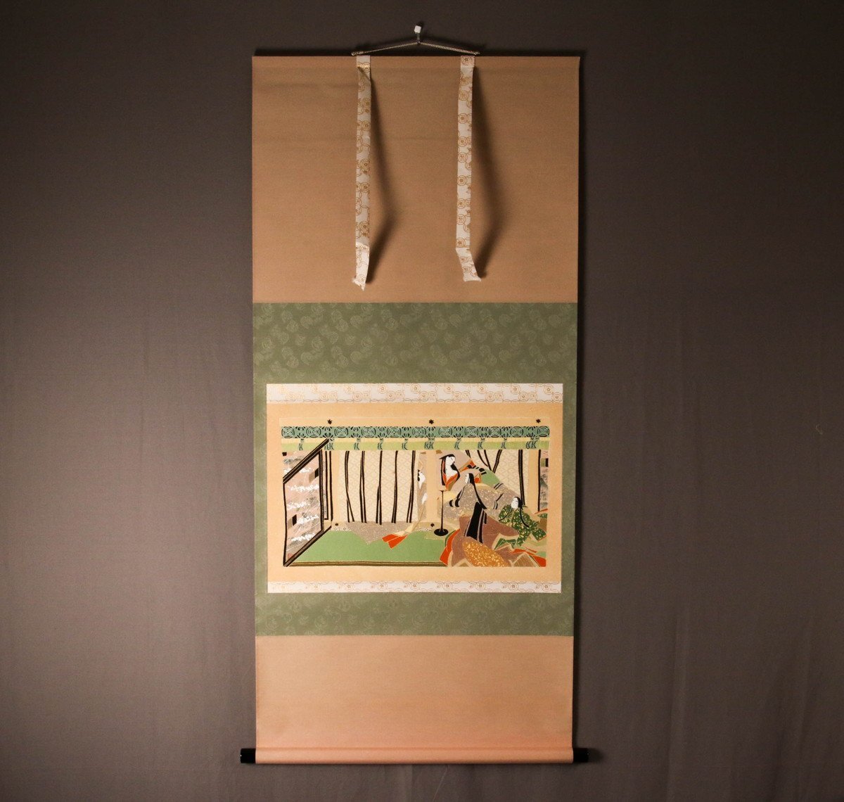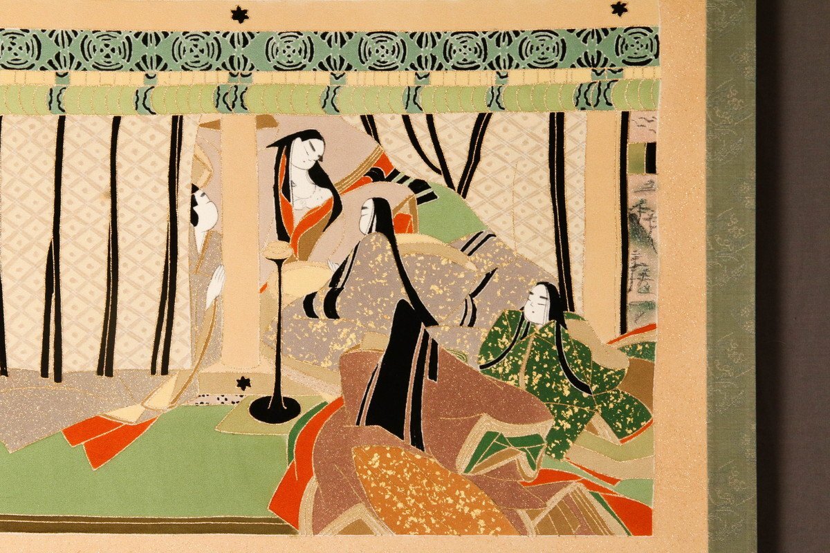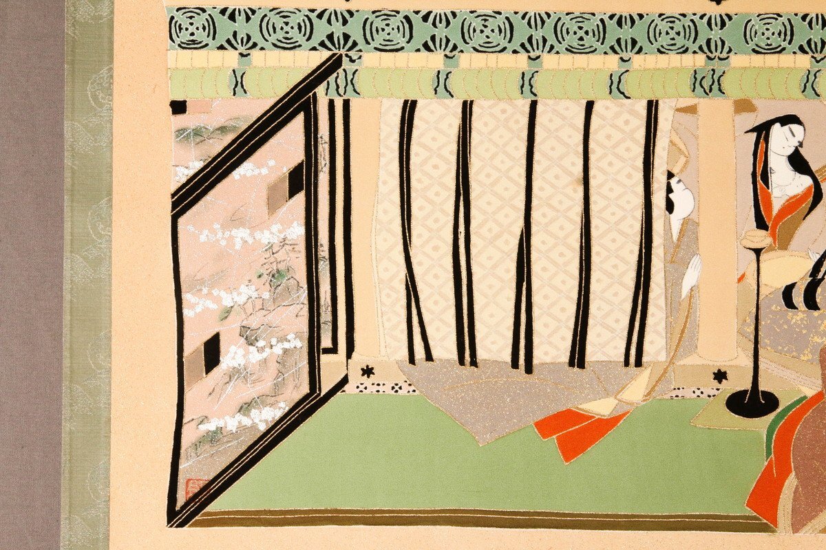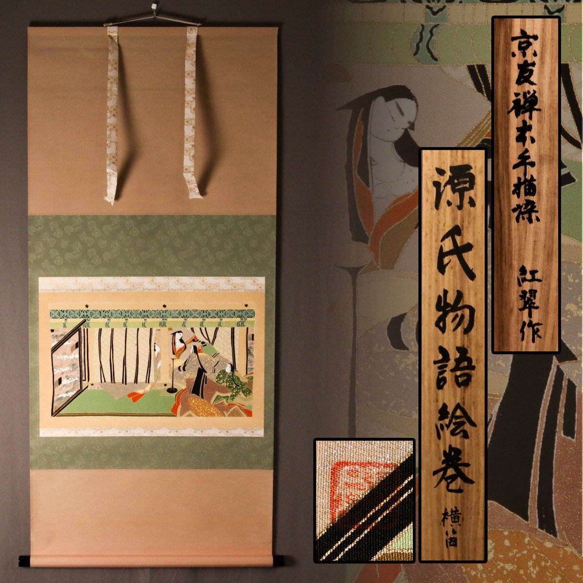 【佳香】紅翠 『源氏物語絵巻』京友禅本手描染 横物 掛軸 仕立箱