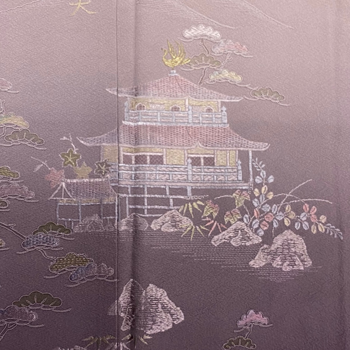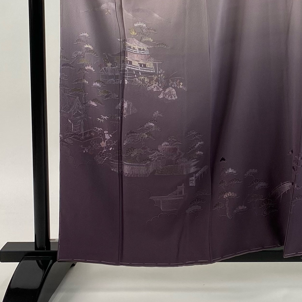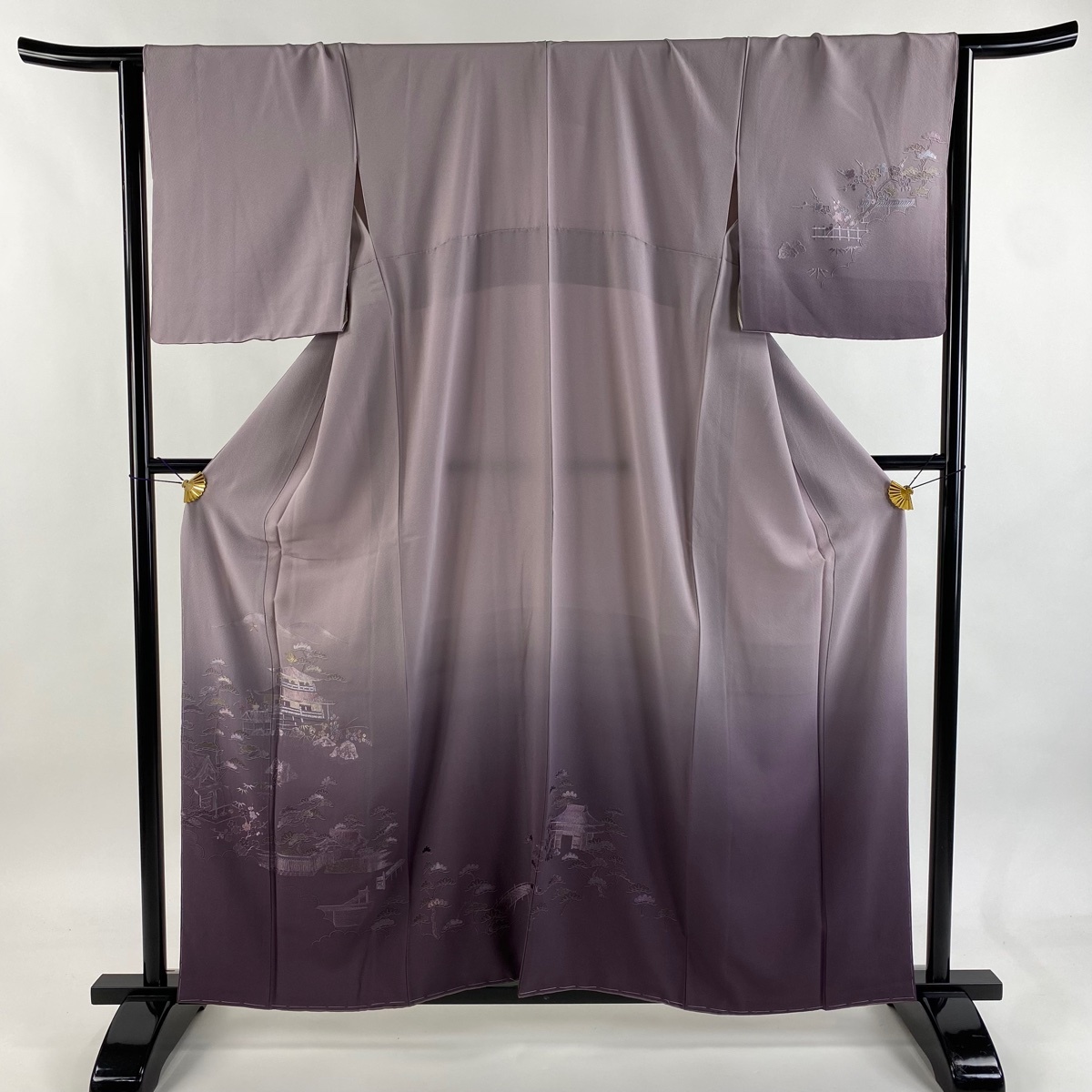 | 付下げ 美品 秀品 ほていや 建物 松竹梅 金糸 刺繍 灰紫 袷 身丈160 裄丈65 M 正絹 【中古】 |