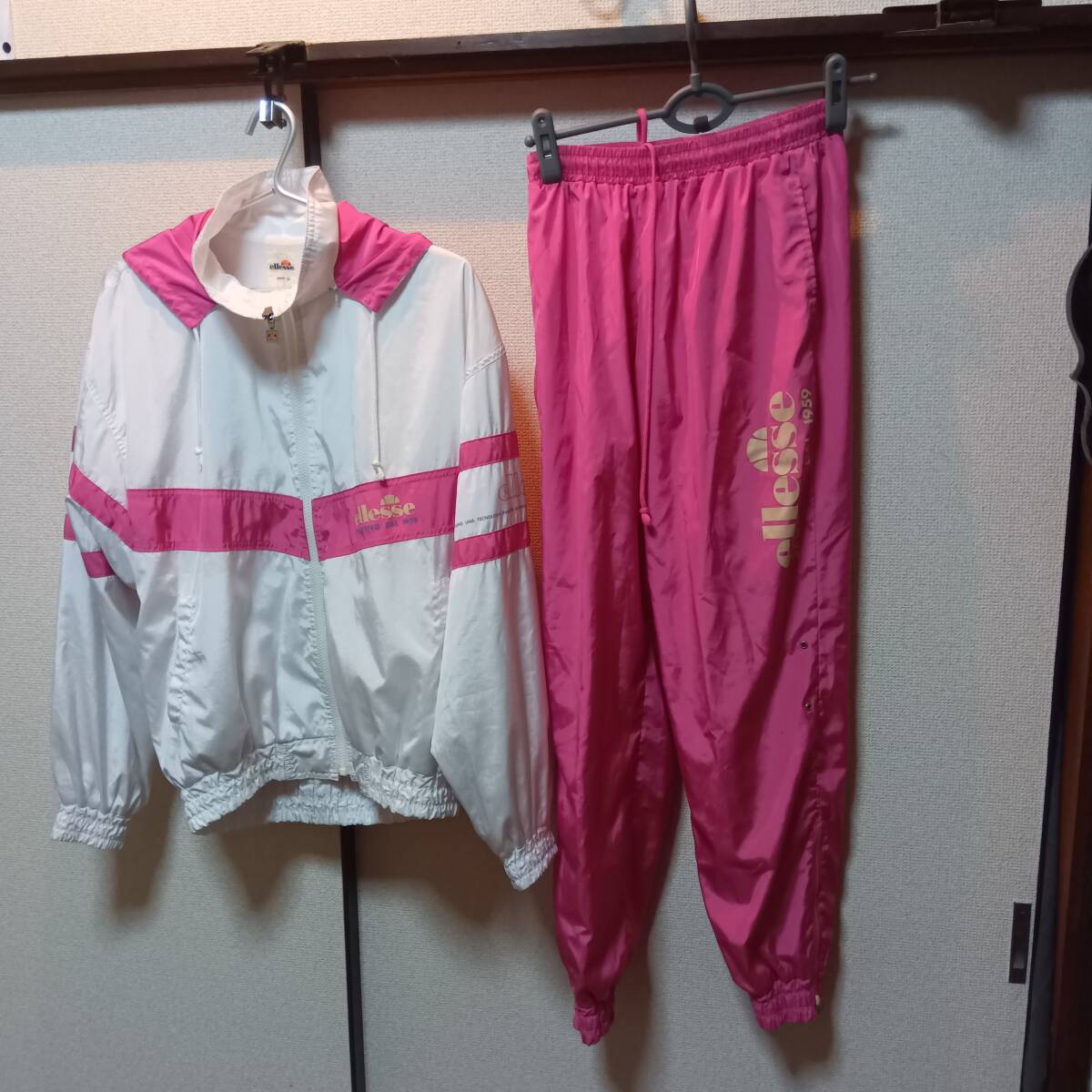 | サイズ上(L)下(M)■ellesse エレッセ■ウインドブレーカー ●セットアップ ●白/ピンク/●used●レディース | |
