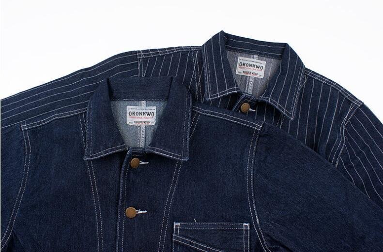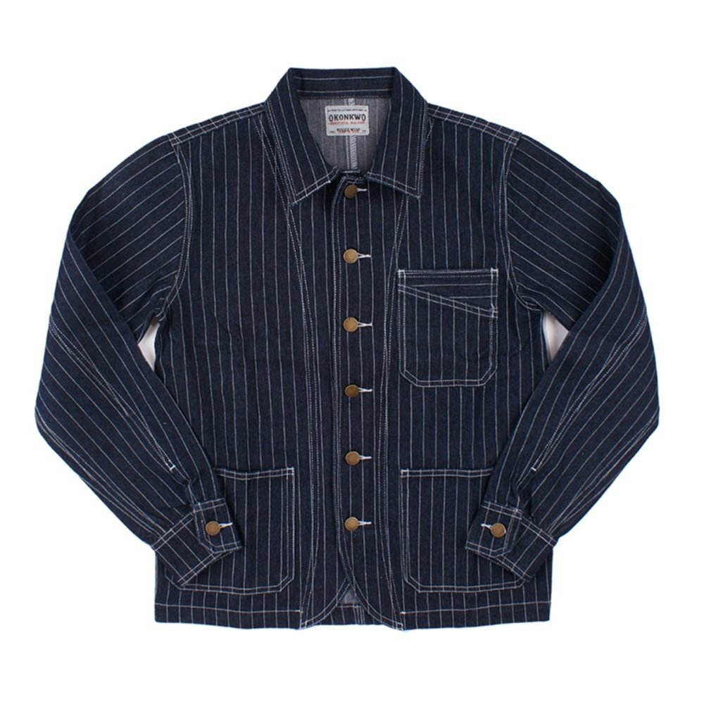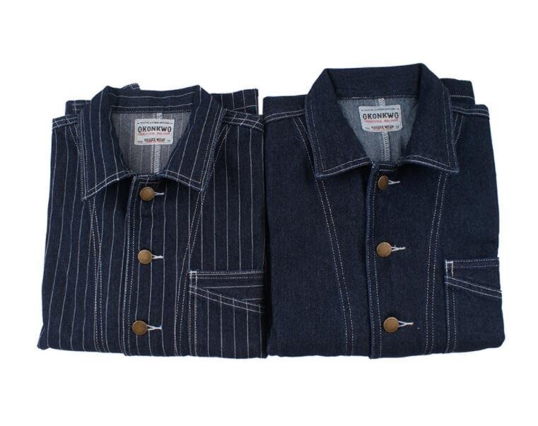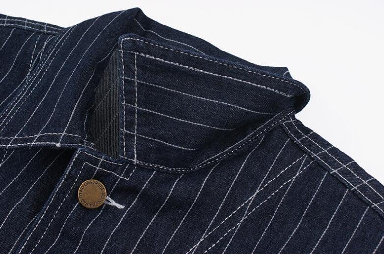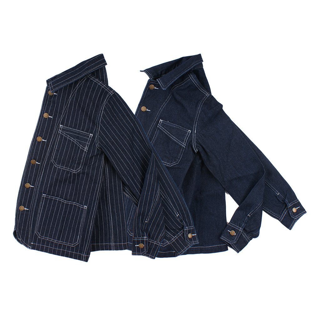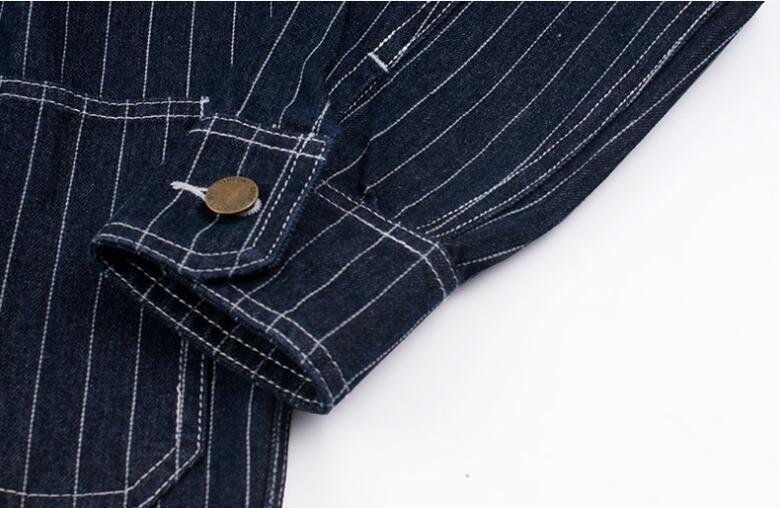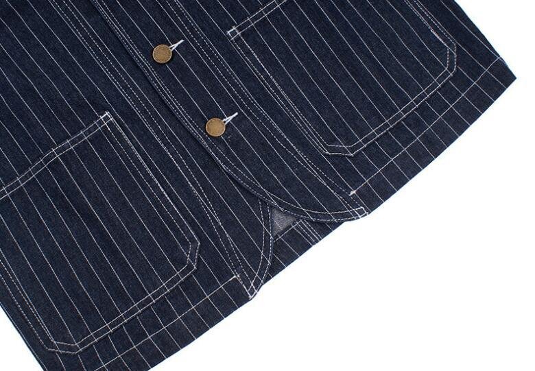 ゆったりシルエットが気分ヴィンテージ復刻コットンデニム ストライプカバーオールジャケット ワーク カジュアル アメカジ ★XLサイズ