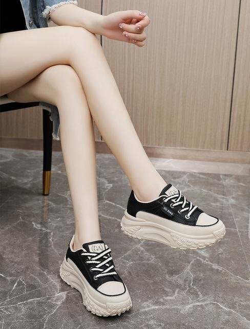 厚底スニーカー レディース インヒールシークレットシューズ 運動靴 軽量 美脚 疲れにくい レースアップ 身長アップ ブラック 23.5cm
