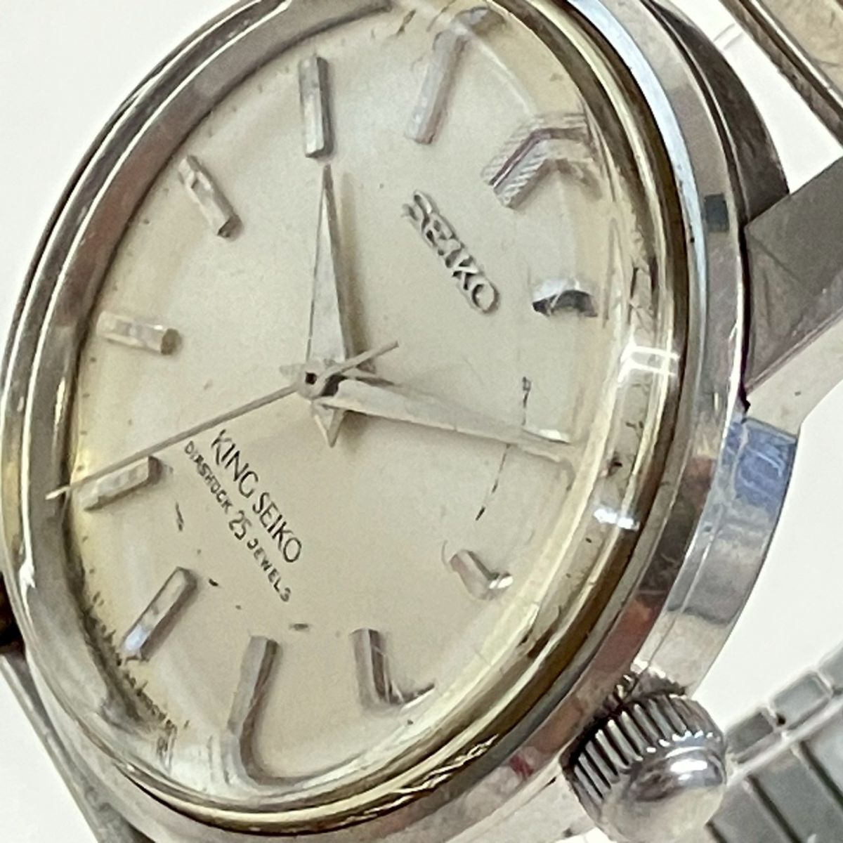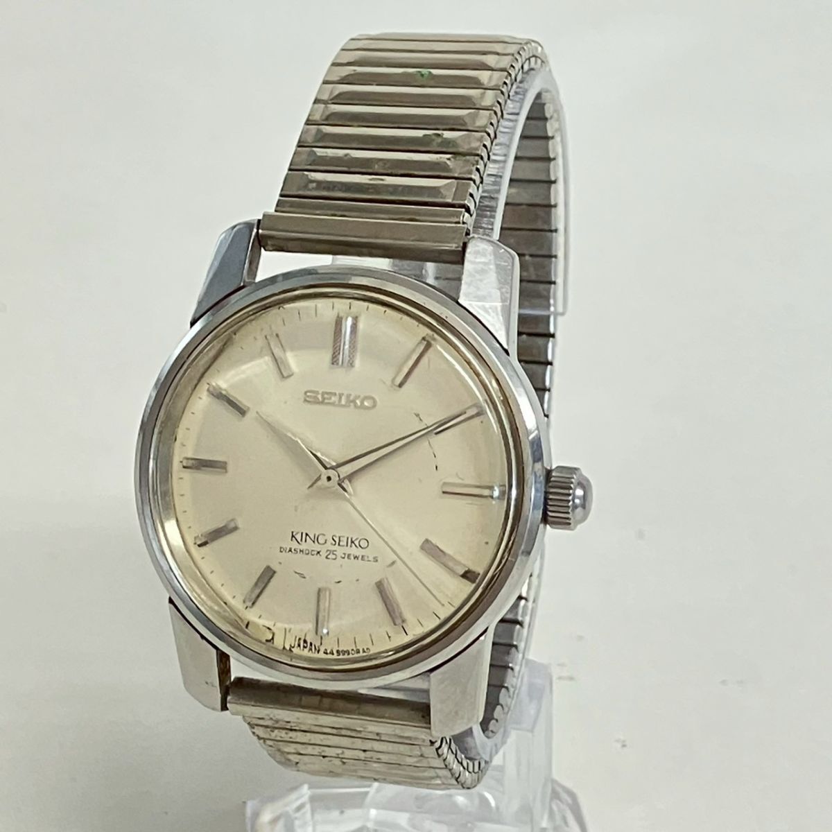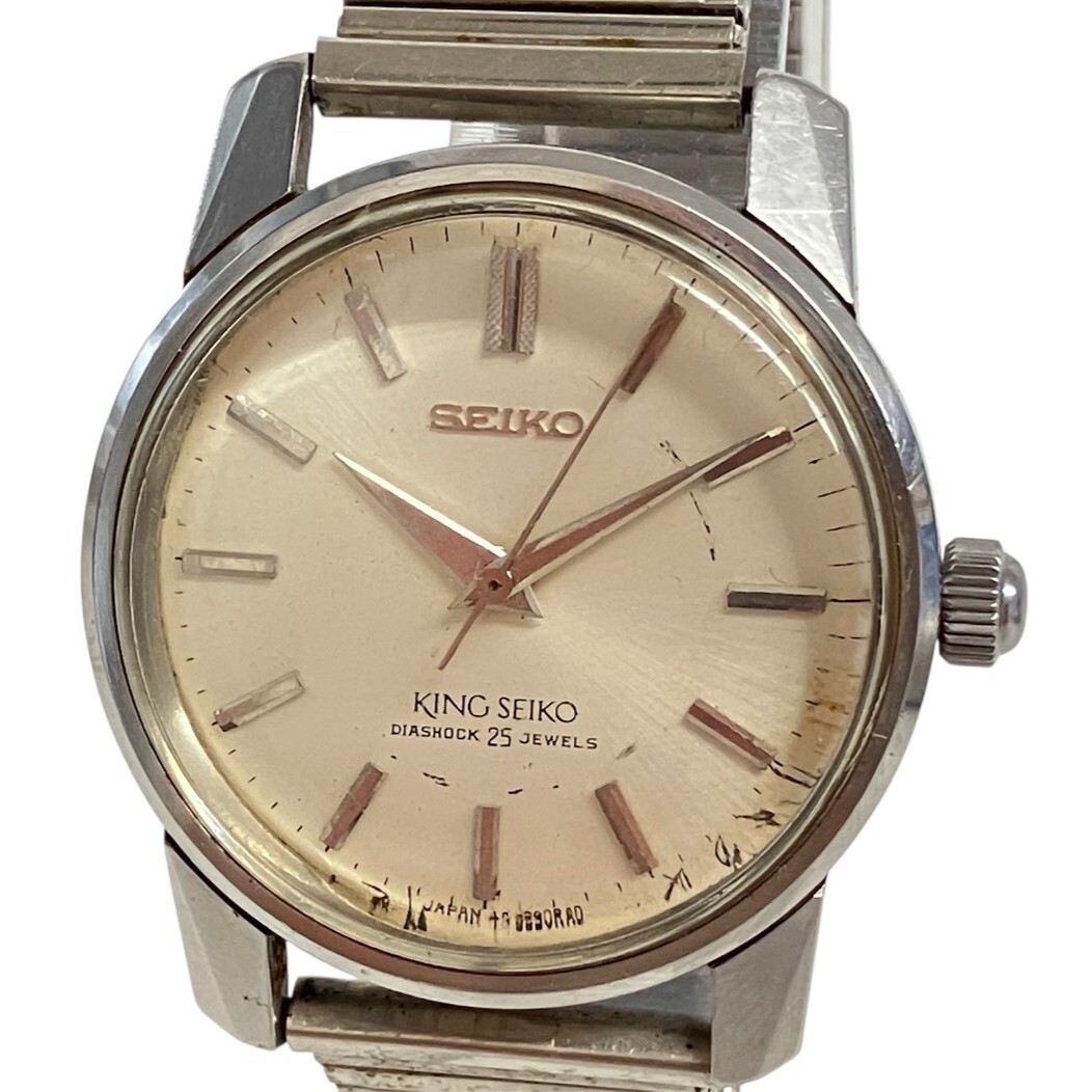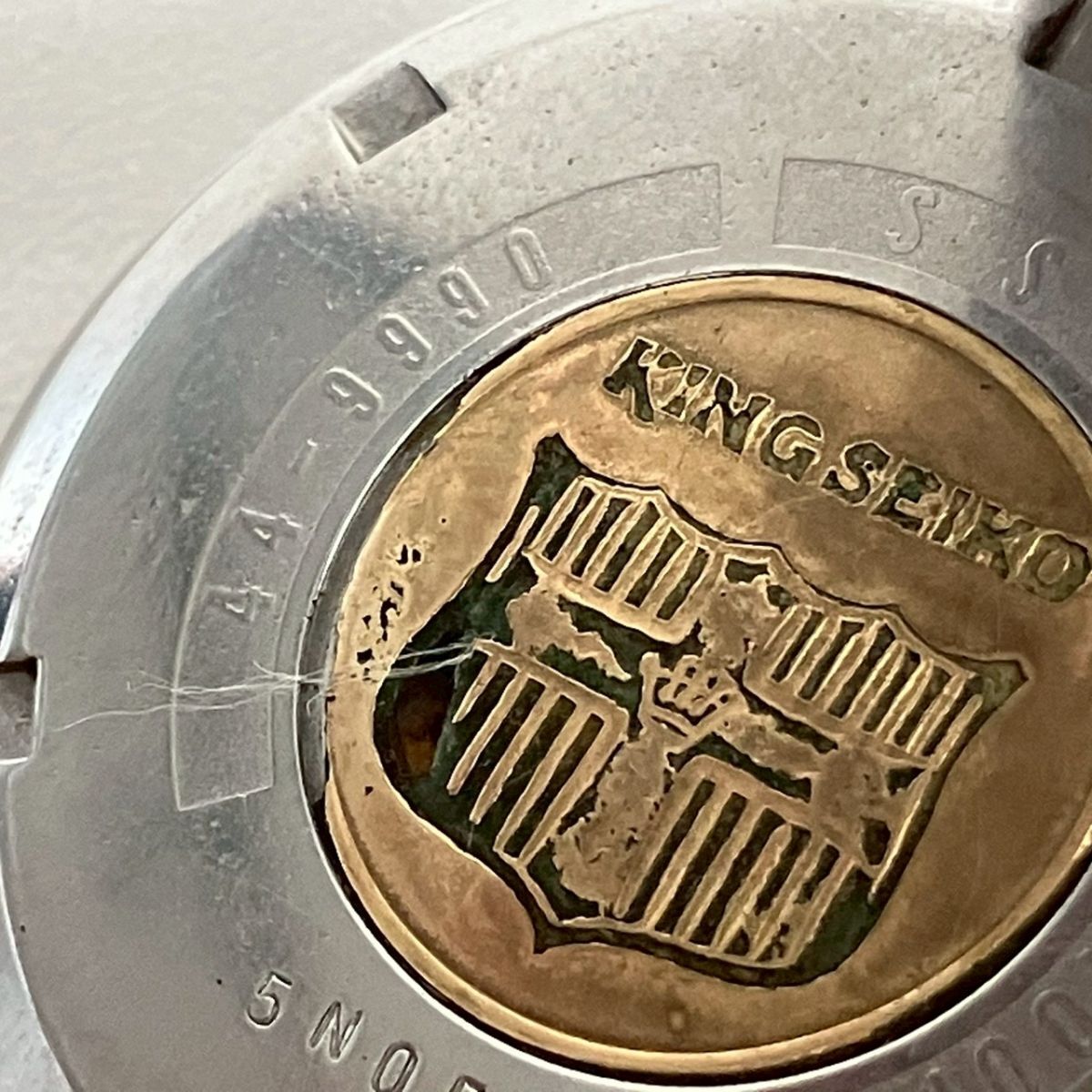 取り扱っている商品は未使用・未開封も含め、全て一度は人の手に渡った一点ものの中古・ジャンク扱いでの商品です。 当方素人ですので肉眼で確認できる簡易的な検品、採寸、および簡易梱包となります。 ※稼働の記載につきましては秒針等の確認のみとなり、全体の動作を保証するものではございません。 また、出品時の中古品の動作状況となりますので、予めご了承の上でご入札ください。 不動の表記につきましてはクォーツ式のムーブメントの場合、動作未確認の状態となります。 電池交換後、不具合があった場合でも返金、返品の対象とはなりませんので、予めご了承くださいますようお願い致します。 細かな日差、オーバーホール状況、社外パーツの使用に関しては保証しかねますので、ご理解いただけた上でのご入札をお願い致します。 上記を踏まえた上で中古品、ジャンク商品として出品させていただいておりますので、全てご理解いただけた上でのご入札をお願いいたします ------------------------------------------------------------------------- 【メーカー】 SEIKO 【モデル名】 KING SEIKO 【型番】 44-9990 【シリアル】 5N05790 【サイズ】 直径約3.5cm 腕回り約17.3~cm 【付属品】 画像参照 【稼働状態】 稼働 【その他状態】 リューズ動作 時間:OK 日付:- 曜日:- 文字盤・メダル劣化 ------------------------------------------------------------------------- 画像にあるものが全てです。 他詳細は画像にてご判断ください。 ※目立つ傷や汚れを中心に写真を撮っておりますが、画像に写りきっていない傷等がある場合もございます。予めご了承ください。 ※商品を多数出品している関係で、稀に商品説明や画像に誤りがある場合がございます。予めご了承ください。 こちらのページをご覧いただく際は、商品説明文と掲載している画像の全てを確認いただいた上でご入札ください。 | |||||||