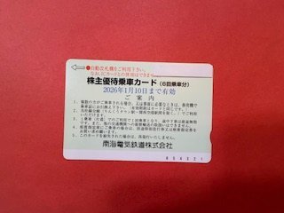 1枚 ☆南海電鉄・株主優待 乗車カード(6回乗車分)☆2026年1月10日期限♪