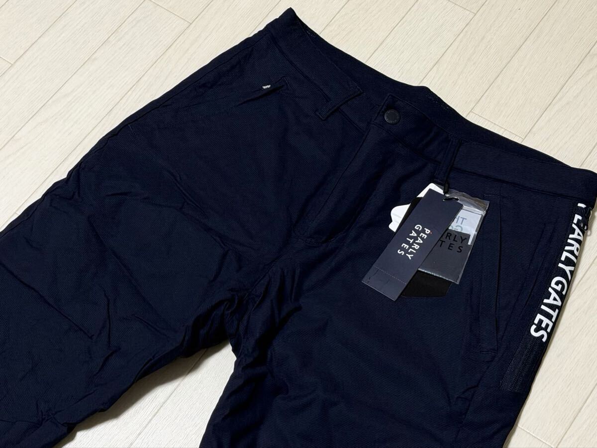 | ~秋冬モデル PEARLY GATES パーリーゲイツ 正規品~ パーリーゲイツ PEARLY GATES 左サイドロゴプリント 中綿入り 保温 ウエストゴム ストレッチパンツ 新品です。 撥水性と防風性に優れた表生地と軽くて温かな中綿素材を採用した、寒い冬のゴルフホリディにオススメのパンツです。温かさを保つ中綿パンツでありながらも、スタイルアップ効果のある細身のシルエットが魅力です。身体の動きを妨げずにストレスのないはき心地を実感できます。滑りのよい裏生地付きなので、レギンスなどをインナー使いしてもスルッとはけるのもポイント。ファスナーポケットなどの機能的なポケットと、ポーチやホルダーを取り付けやすいDカン配置により利便性をアップしました。 株式会社TSIの商品です。ご安心下さいませ。 サイズ:5(ウエスト80-84cm) ※ウエスト全体にゴムが入っています。 【サイズ表】 5:ヒップ106cm、総丈105cm、股上28.5cm、股下78cm、わたり幅32.5cm、裾幅18cm 6:ヒップ108cm、総丈106cm、股上29.5cm、股下79cm、わたり幅34cm、裾幅18.5cm 素 材:(表生地)ナイロン92%、ポリウレタン8% (詰物)ポリエステル100% (裏生地)ナイロン91%、ポリウレタン9% カラー:ダークネイビー 特 長:ストレッチ、撥水、保温、防風 定 価:33,000円(税込) 格安出品です。必ず自己紹介欄をご覧になり入札を頂きます様、よろしくお願い致します。 | |||