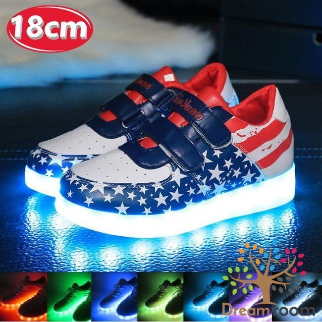 1スタ☆kids 7色に光る☆LED ライトアップ スニーカー 【アメリカン 18cm】 韓国子供服 キッズ シューズ 子供用 男女