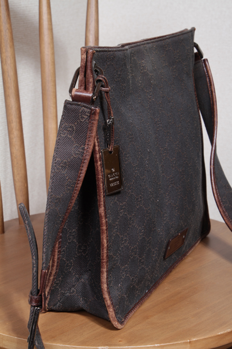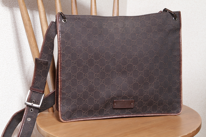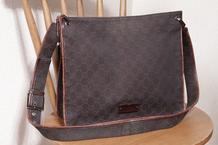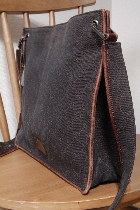 GUCCI グッチ GG柄 キャンバス レザー ショルダーバッグ ブラウン系 イタリア♪