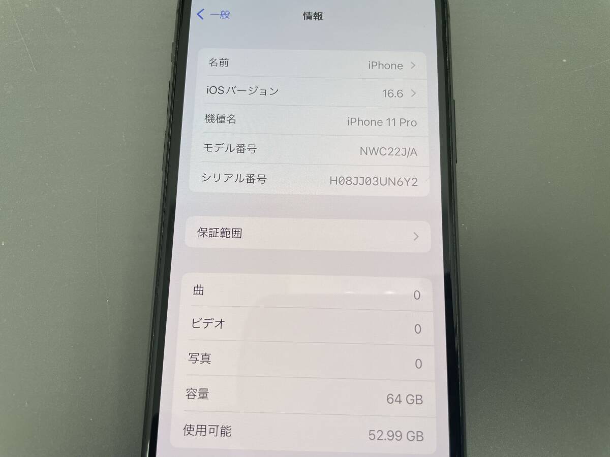 【美品】1円スタート☆docomoドコモ iPhone 11 Pro NWC22J/A 64GB スペースグレイ SIMロック無し