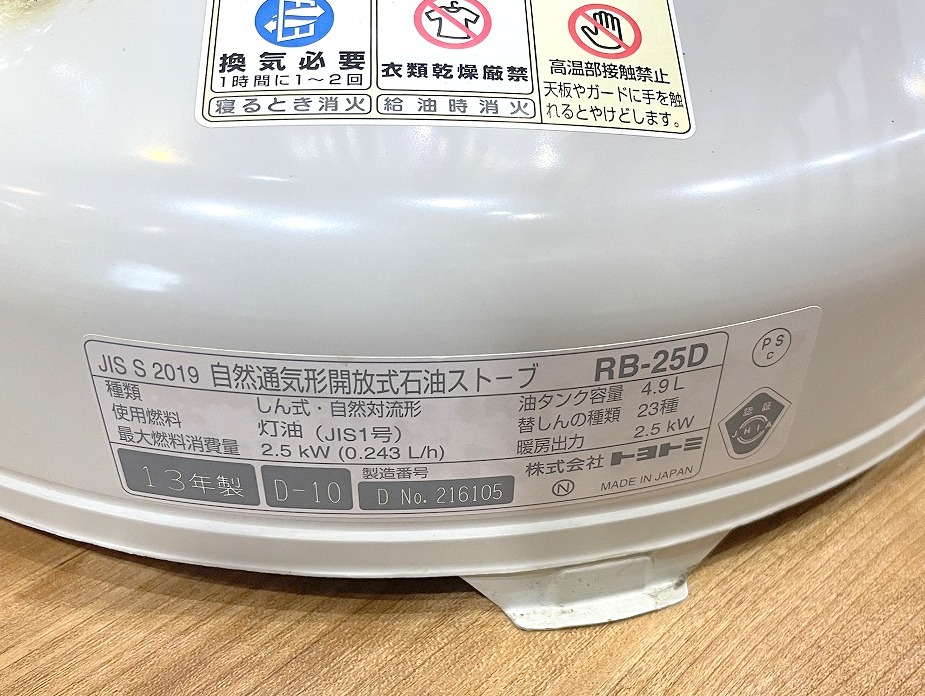 TOYOTOMI トヨトミ レインボーストーブ 自然通気開放型 石油ストーブ RB-25D 油タンク4.9L 暖房出力2.5kW 動作確認済