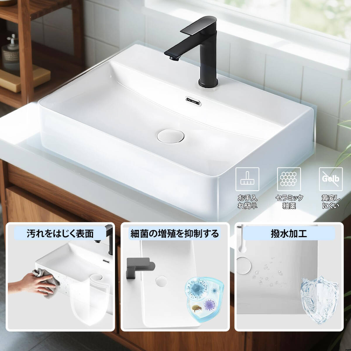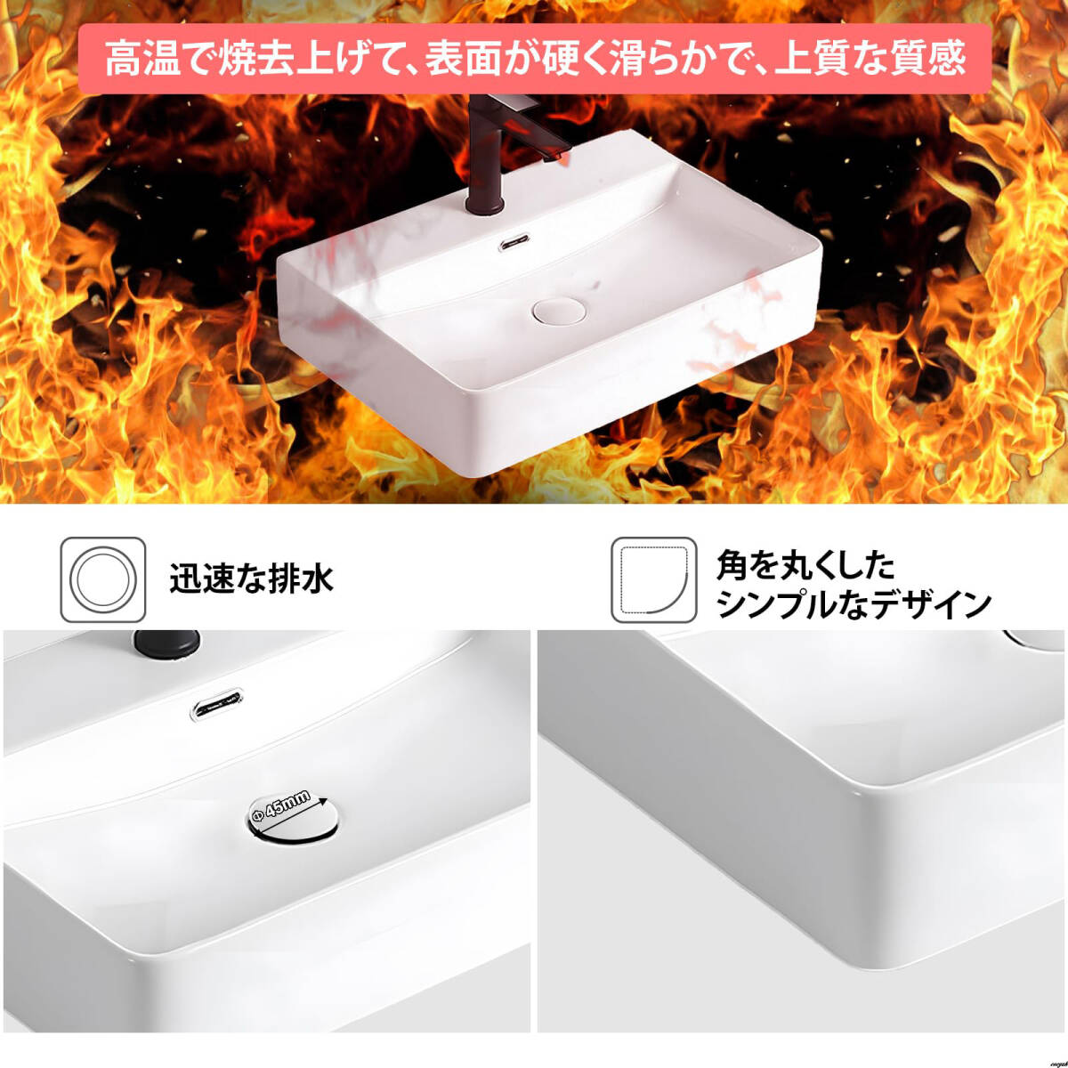 【ポップアップ式排水セット付きで、排水も簡単】 大型洗面ボウル 置き型 陶器製 オーバーフロー ベッセル式 ポップアップ排水