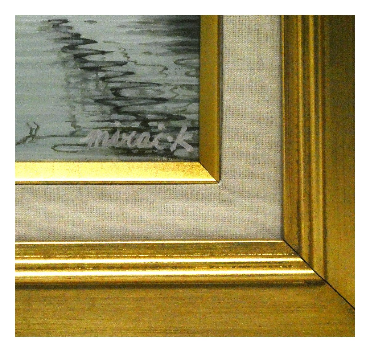 作品右下にサイン キャンバス裏木枠に作家名・タイトル・「取材池:井の頭公園」記載 三越シール |