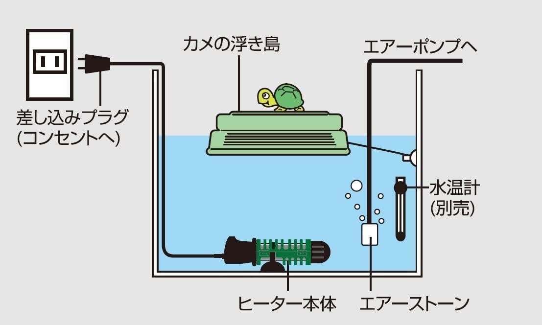 ●自動温度調節器により、水槽の周辺気温が15℃以上の時、水槽水温を一般的なカメに適した26℃前後(±1.5℃)に維持します。