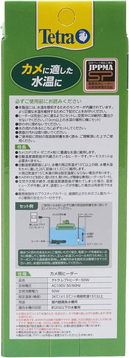 テトラ レプトヒーター 50W 安全カバー付  カメに適した水温26℃に自動で固定      送料全国一律 450円