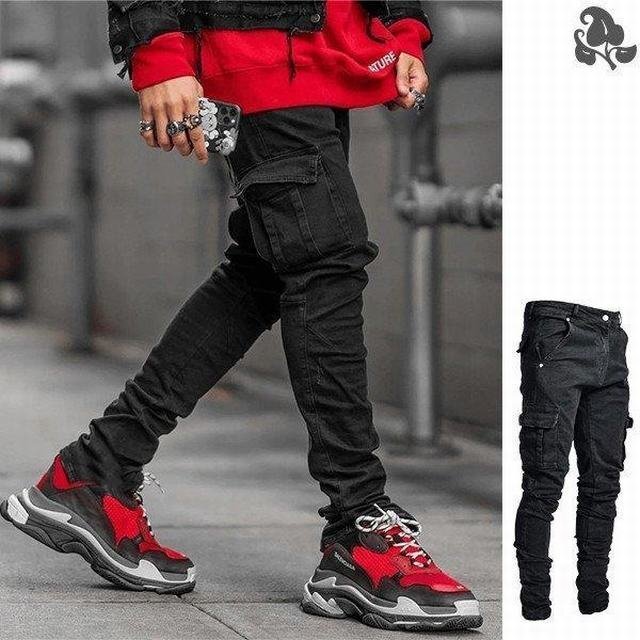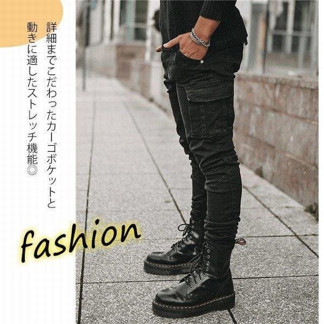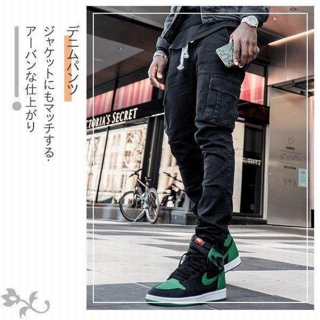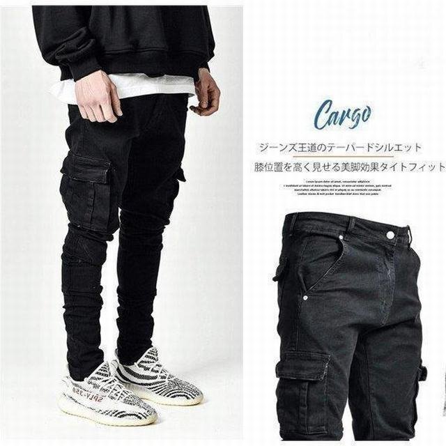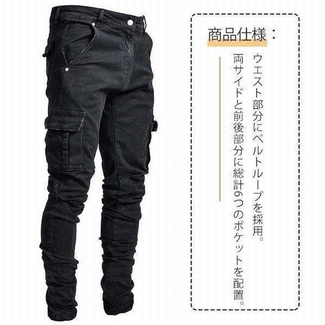秋 ジーパン ジーンズ カーゴパンツ デニムパンツ メンズ スキニーデニム 作業着 パンツ ワークデニムブラック 2XL
