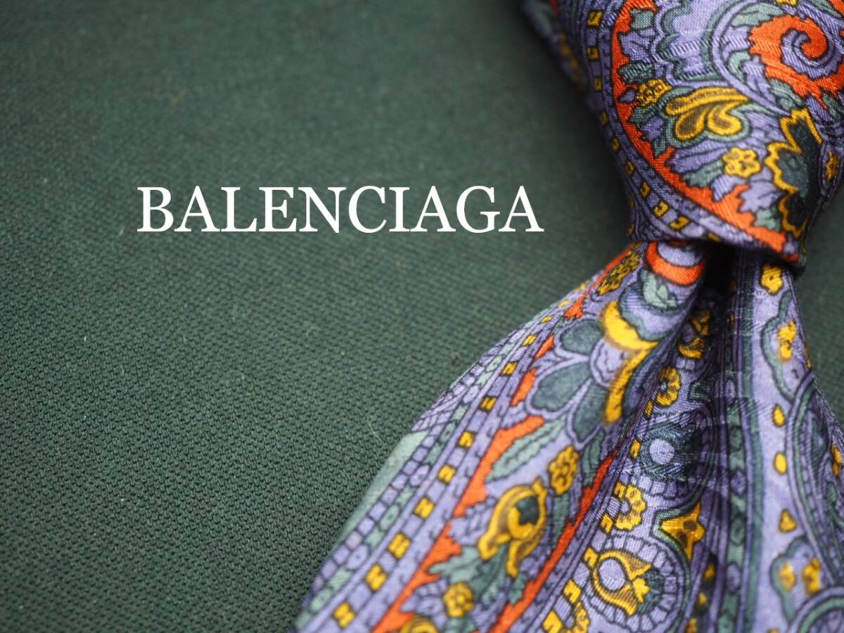 美品【BALENCIAGA バレンシアガ】 G1917 ペイズリー SILK ブランド ネクタイ 古着 良品 転売 仕入