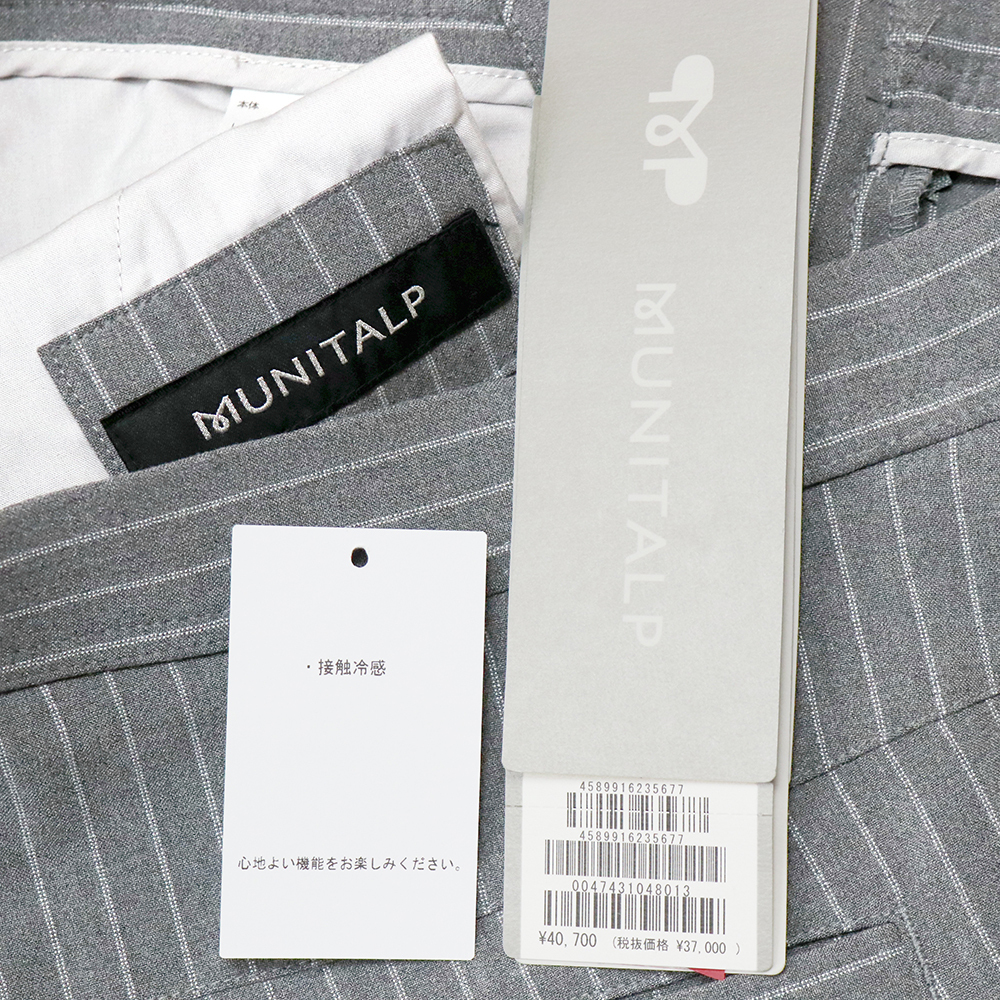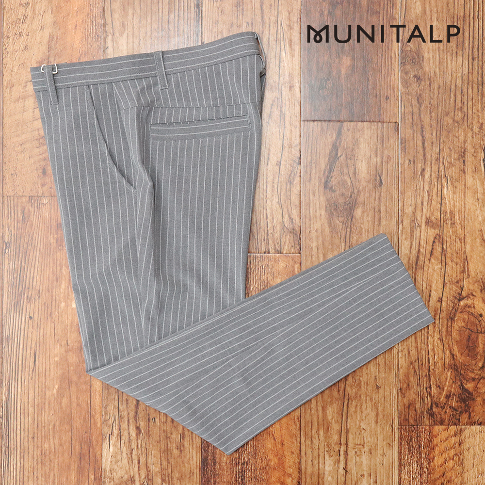 1円/MUNITALP/50(L)サイズ/ストライプ ストレッチ パンツ 004-74310 ゴルフ 街穿き ムニタルプ 新品/グレー/ka111/