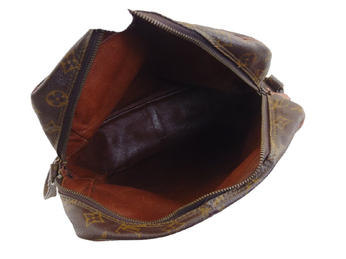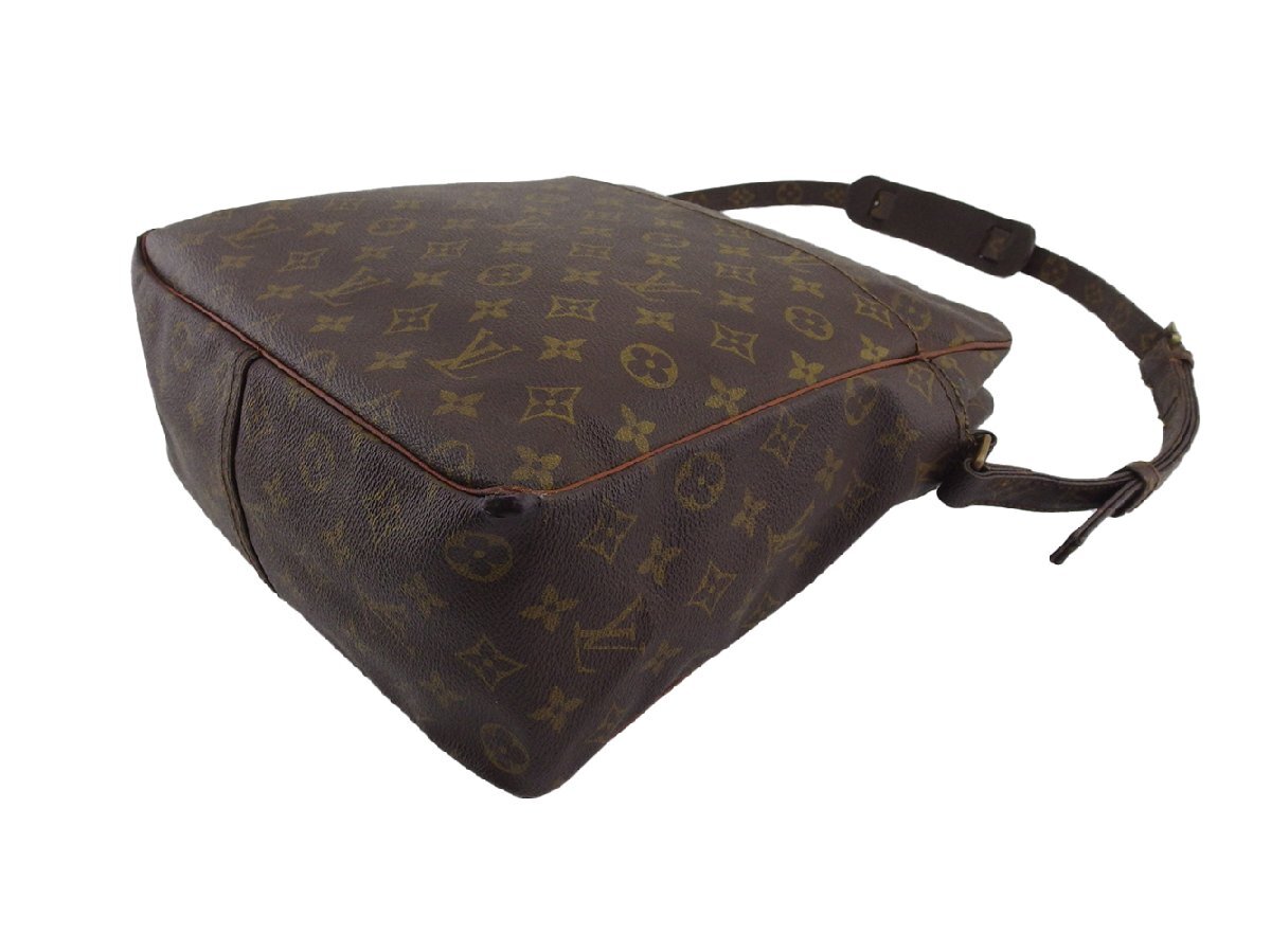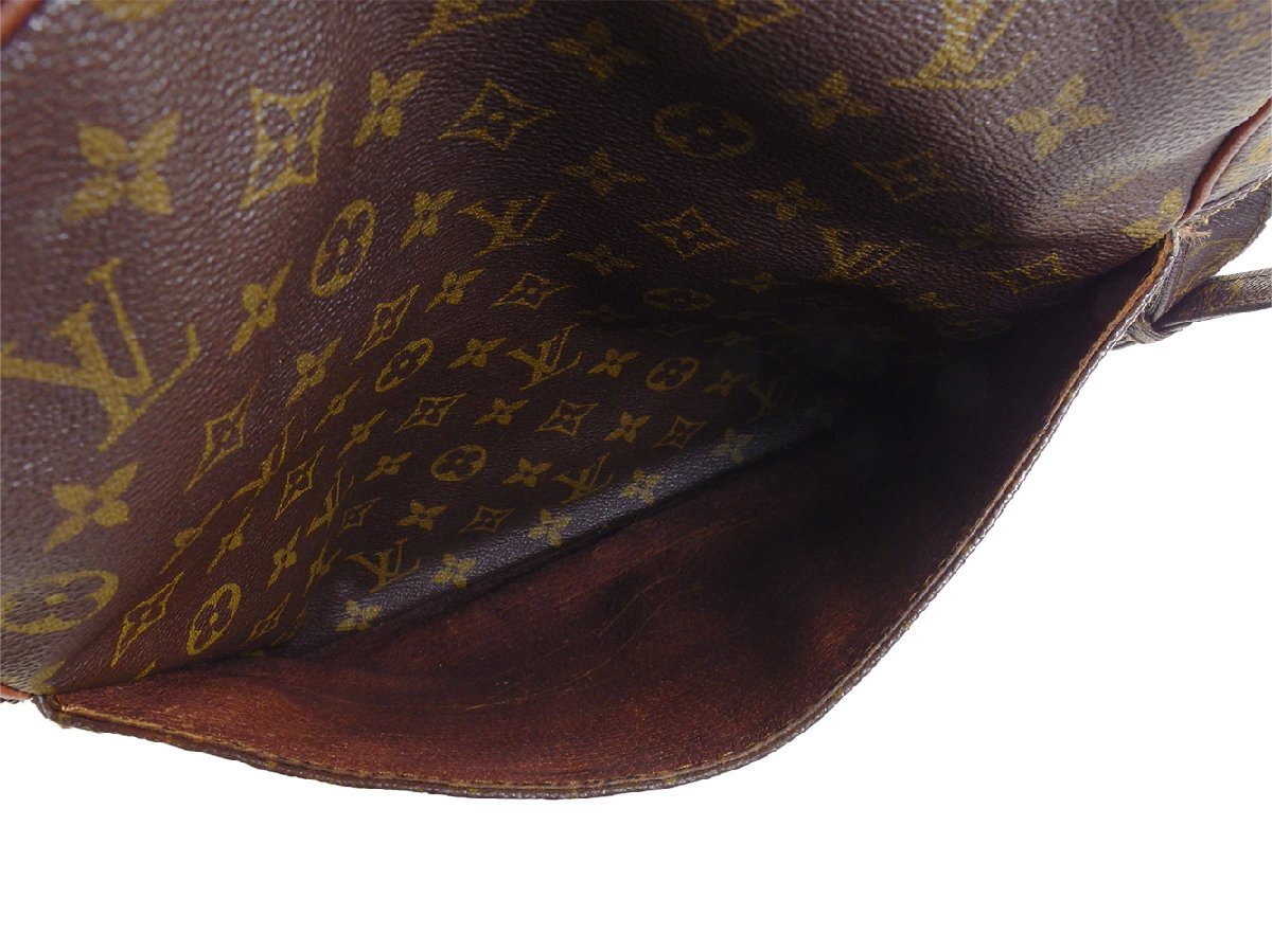 | コンディション | 全体の状態詳細:若干の使用感はございますが、大きなダメージは無くまだまだご使用いただけます。社外リペア跡(ショルダーストラップの付け根部分の補強補修、開口部や角部分にモノグラムキャンバスの破れ補修)あり。外側:モノグラムキャンバス(角スレ、開口部やショルダー付け根に補修跡)、金具類(くすみ、傷)あり。内側:内張(傷、汚れ)あり。その他、目立たない 傷 汚れ などの一般的使用感がある場合がございます。ご了承ください。 |
