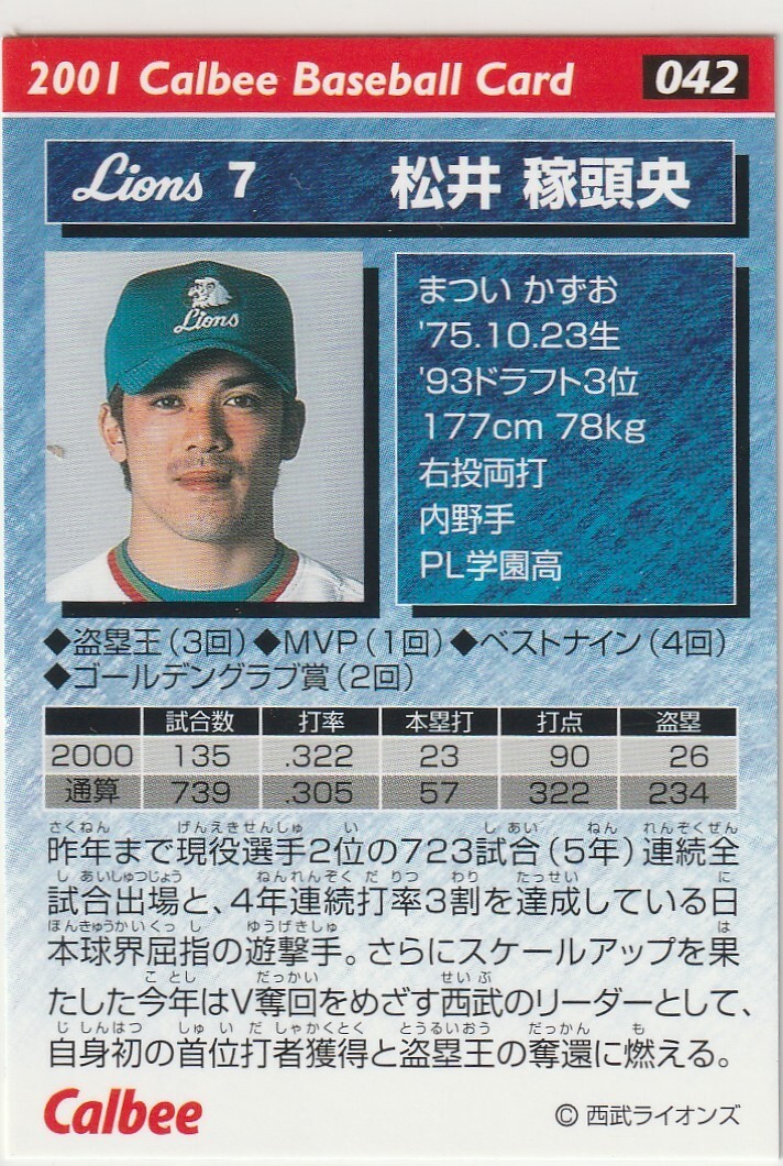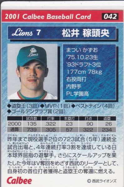 ●2001カルビー 【松井 稼頭央】 BASEBALL CARD No.042:西武 R