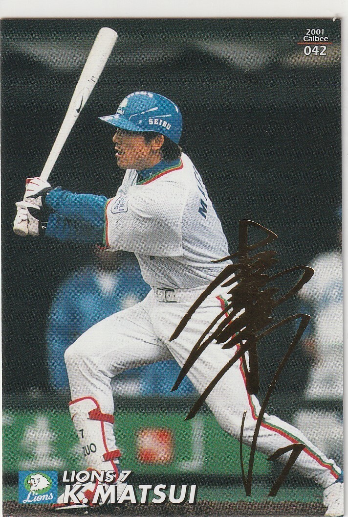 ●2001カルビー 【松井 稼頭央】プレ版:金箔押サインパラレル No.042:西武