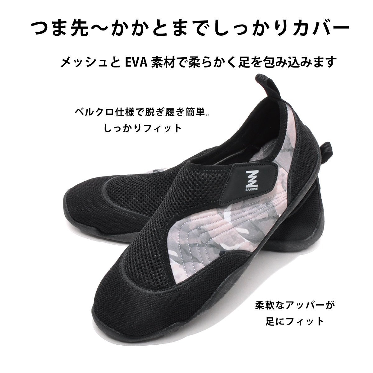 | 詳細 | 当店オリジナルブランド「BANNNE」のウォーターシューズ 暑い夏、キャンプや海、川、様々な水辺でのシーンの際に必須アイテムのマリンシューズを お届けします! 海で楽しむ際に、ビーチサンダルを波にさらわれた経験はありませんか? BANNNE(バンネ)のウォーターシューズは柔らかでな仕様でありながらしっかりとした アウトソールですので、熱い砂浜でもOK! シューズタイプですので、波にさらわれるアクシデントも軽減されます。 (かかとをつぶしての使用も可能ですので、その際はご注意ください) しっかりとしたアウトソールが石や貝殻・サンゴ礁などでのけがから足を守ります。 ビーチや川あそび、キャンプなどのアウトドアで、シュノーケリングやSUP、 夏のイベントやカヤックなど、夏のアクティビティで快適に過ごす事ができる重要アイテムです。 かかと部分を潰して履くことも可能です。甲部分には脱ぎ履きが楽ちんなマジックテープ付(面ファスナー)付きですので、サンダルやスリッポン感覚で「ちょっとそこまで」のワンマイルシューズとしても活躍します。 メッシュ素材とEVA素材を組み合わせたアッパーは、ソールは合成ゴム。 どちらも柔軟性と耐久性を兼ね備えていますので、水辺での使用後はギュッと絞っても 大丈夫なタフ素材です。 持ち運びに便利なカラビナ付きなので バックパックに下げたり、車の中に常備して置くことも可能です。 上履きが必要なシーンでも軽いシューズですので持ち歩きにも負担になりません。 万が一の災害に備えて、防災バッグに常備しておくこともおススメです! 実際に使用しているユーザー様からは、スポーツ応援のときに活躍してます!などの お声も頂いております。 シンプルなロゴ柄・ゼブラ柄・エレファント柄の3パターン展開ですので お好みに合わせて足元のアクセントに。 【カラー】 LogoBlack ロゴブラック Zebra ゼブラ Elephant エレファント 【サイズ】 22.0cm / 23.0cm / 24.0cm / 25.0cm / 26.0cm / 27.0cm / 28.0cm メンズ、レディース、ジュニア 【限定オリジナルカラビナ付き】 リュックやトートバッグにシューズをぶら下げれるオリジナルカラビナ付き! プール 水遊び ビーチ 海水浴 川遊び 磯遊び 釣り プールサイド キャンプから普段使いまで。 ウォーターサンダル ウォーターシューズ マリンシューズ サンダル おしゃれ 大人用 子供用 ジュニア メンズ レディース GW ゴールデンウィーク 夏休み お盆休み ※メール便での発送の場合、定形外郵便へ変更となる場合がございます。 予めご理解の上ご注文下さいますようお願い申し上げます。 |