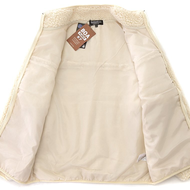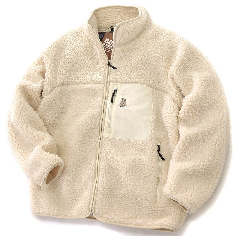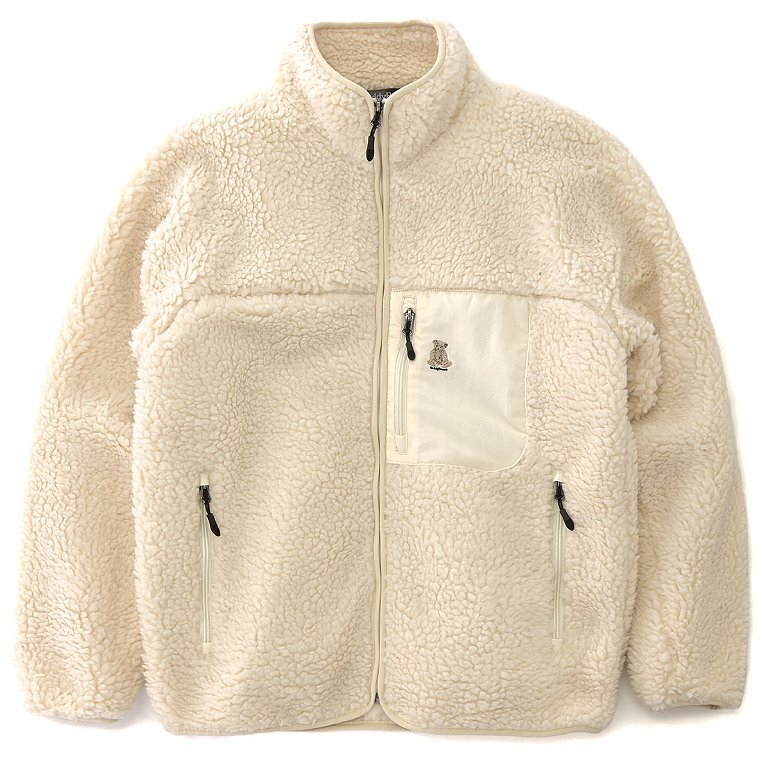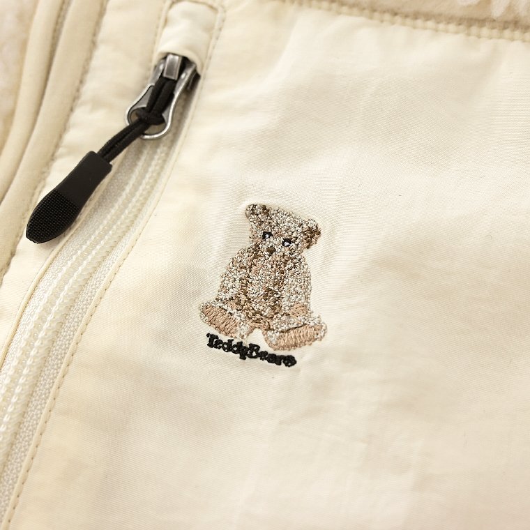 ・もこもこ暖かみのあるボアを使用し、高い保温性を実現しました。 ・軽量ながらも目が詰まっており風を通しにくく、防風性にも優れております。また首元はハイネック仕様でジップアップデザインとなっております。 ・ボディや裾にはゆとりを持たせつつ、裾と袖口はニットテープで絞ることで、 着心地の良さと動きやすさ、程よいボリューム感を兼ね備えた1着です。 ・左胸には切替し素材でポケットを付属し、テディベアロゴを刺繍でデザインしております。 |
