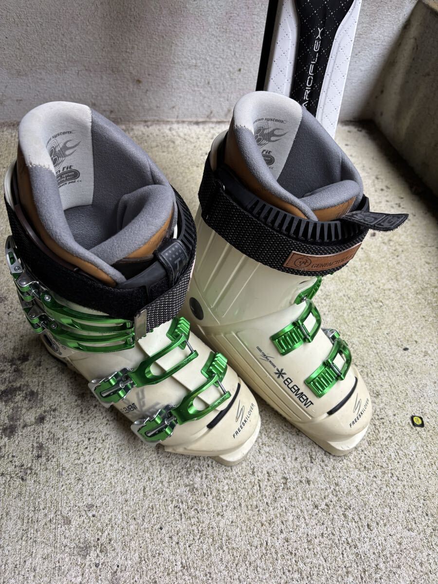 板はアトミック166cmのデモ仕様で白のベースでとても綺麗です。ソールも大きなキズなどありません。良い状態だと思います。ブーツはゲンで履きやすいです。