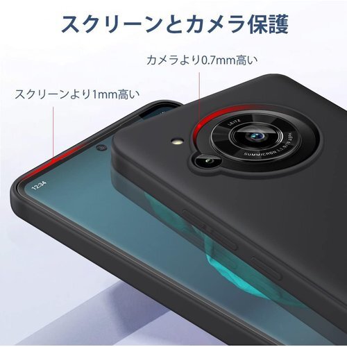 AQUOS R7 ケース シリコン SH-52C スマ 黒 耐衝撃 軽量 スリム ストラップホール付き ブラック 496